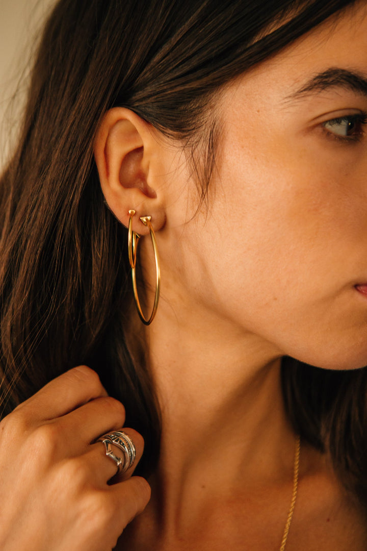 Crafted in 18k gold vermeil, 1' diameter hoops. Hypoallergenic.