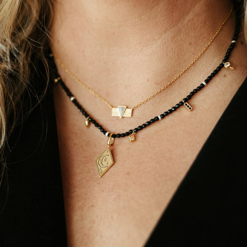 This Sun & Moon Pendant by Sierra Winter Jewelry is a celestial talisman that balances the energies of day and night. One side glows with a radiant sun; the other sparkles with a crescent moon and stars. A piece of harmony, duality, and cosmic charm, it invites you to embrace all your phases.