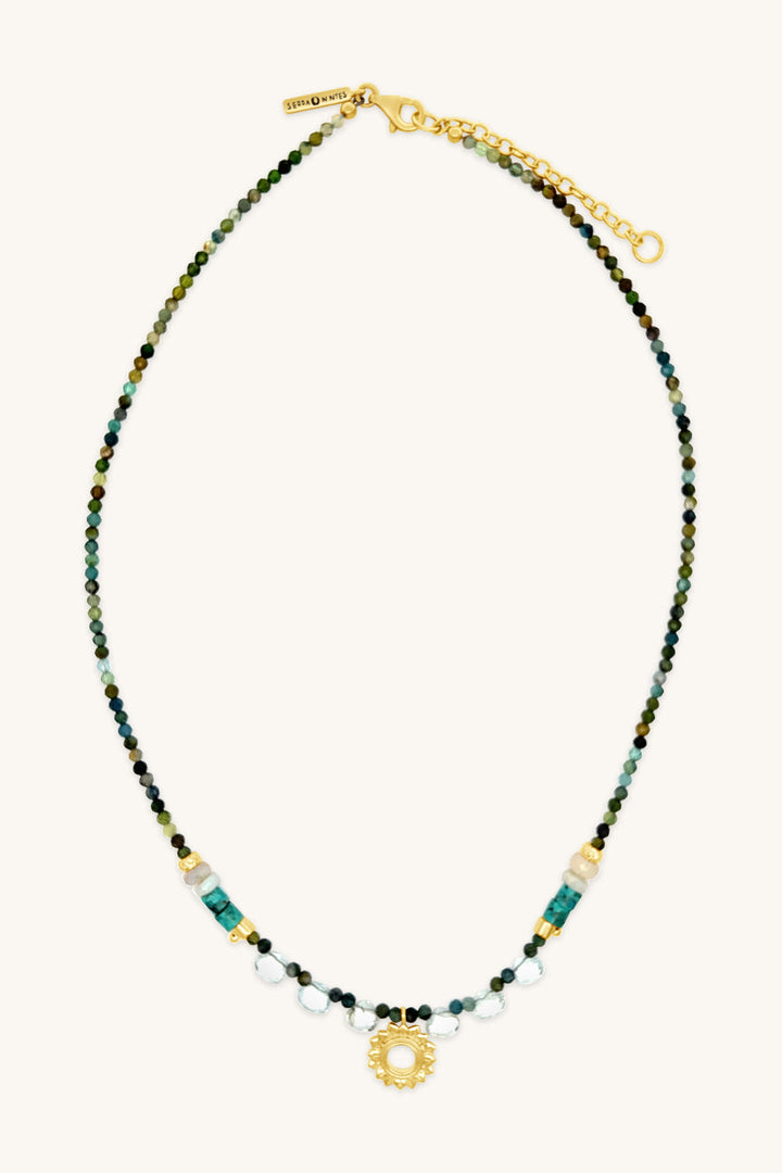 This Brooke Necklace by Sierra Winter Jewelry is a colorful celebration of individuality. Handmade and one-of-a-kind, it combines soft aquamarine, vibrant turquoise, glowing opal, and tourmaline for a look that’s as joyful as it is unique.