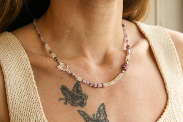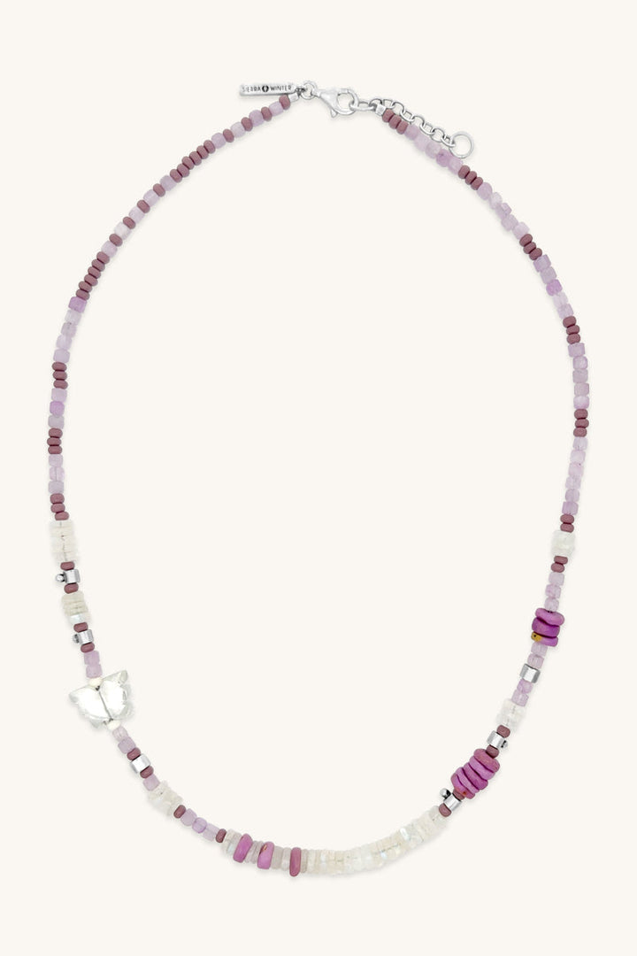 This Marilyn Necklace by Sierra Winter Jewelry sparkles with femininity and romance. With soft, dreamy stones like kunzite and moonstone, it evokes grace, light, and gentle beauty in every strand.