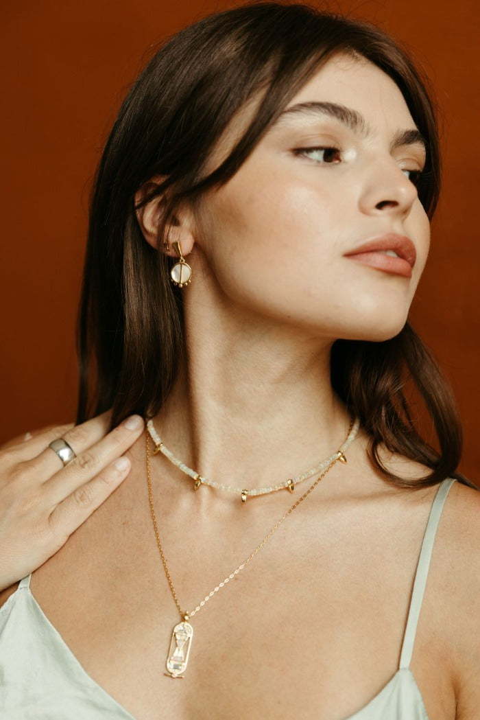 Handcrafted in 18k gold vermeil with Ethiopian opal beads. Adjustable 16–18' length. Avoid exposure to water or sweat.