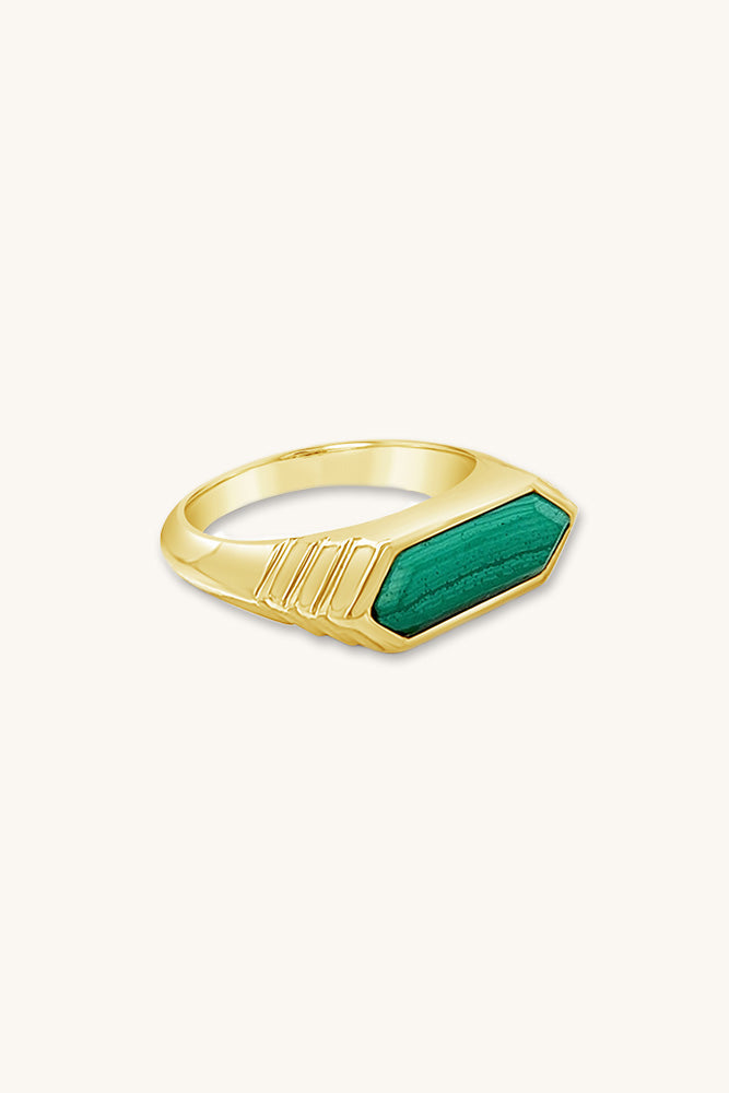Crafted in 18k gold vermeil with natural malachite. Available in sizes 5–9.