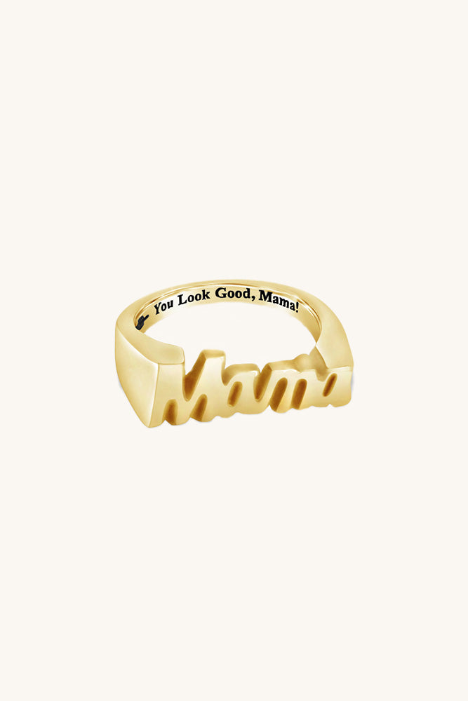 Crafted in 18k gold vermeil. Inscribed with ‘You Look Good, Mama!’ Available in sizes 5–9.
