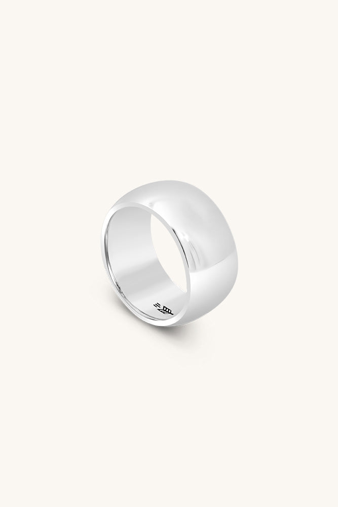 Crafted in sterling silver. 10mm wide band. Available in sizes 6, 7, 8.