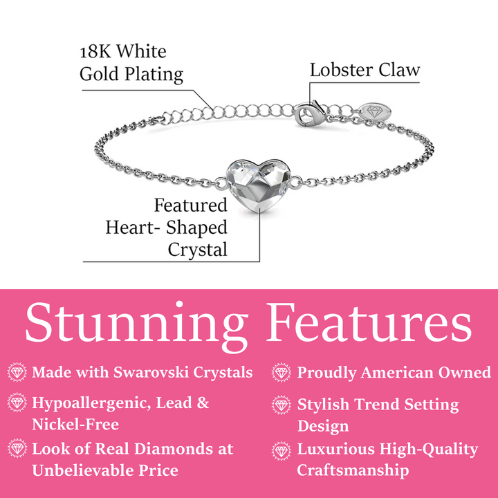 Violet 18k White Gold Plated Heart Bracelet with Swarovski Crystal