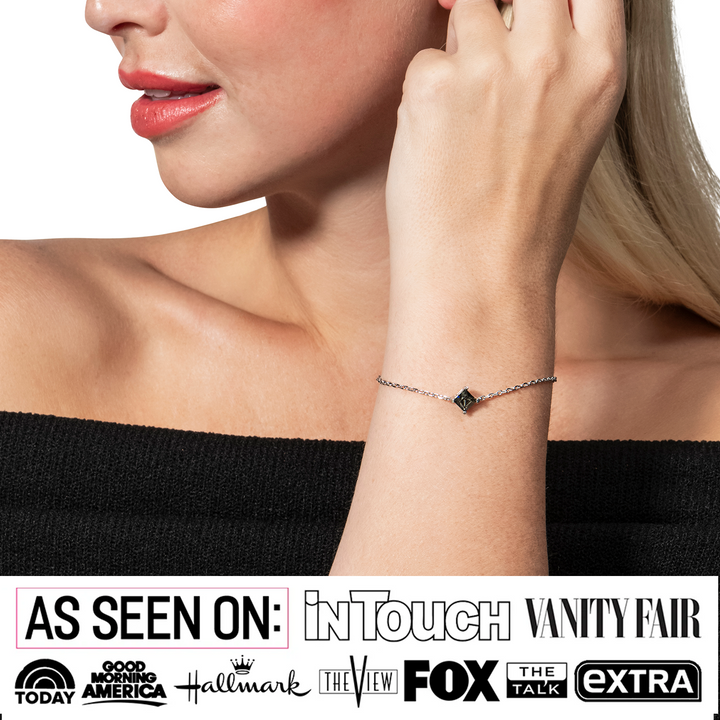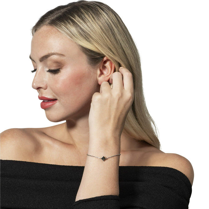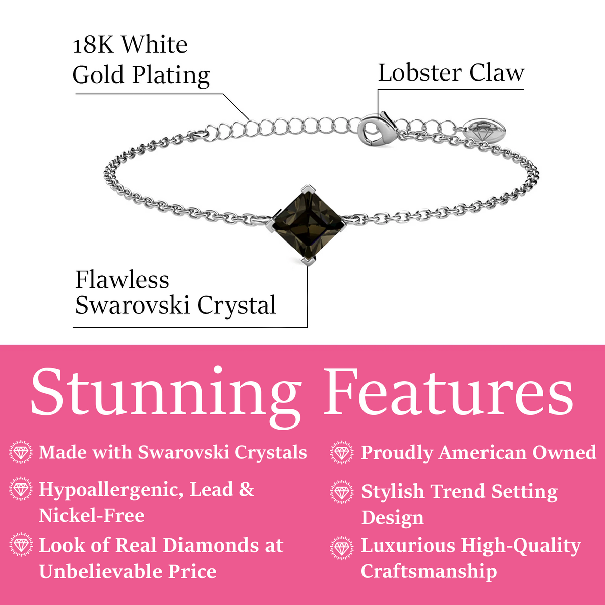This Samantha Bracelet by Cate & Chloe is a striking balance of bold design and delicate refinement. The rich black Swarovski crystal at its center offers a dramatic focal point, enhanced by the gleam of white gold plating. Ideal for layering or making a solo statement, Samantha adds depth and allure to every wrist it graces.
