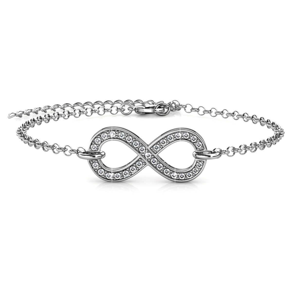 Morgan 18k White Gold Plated Infinity Bracelet with Swarovski Crystals