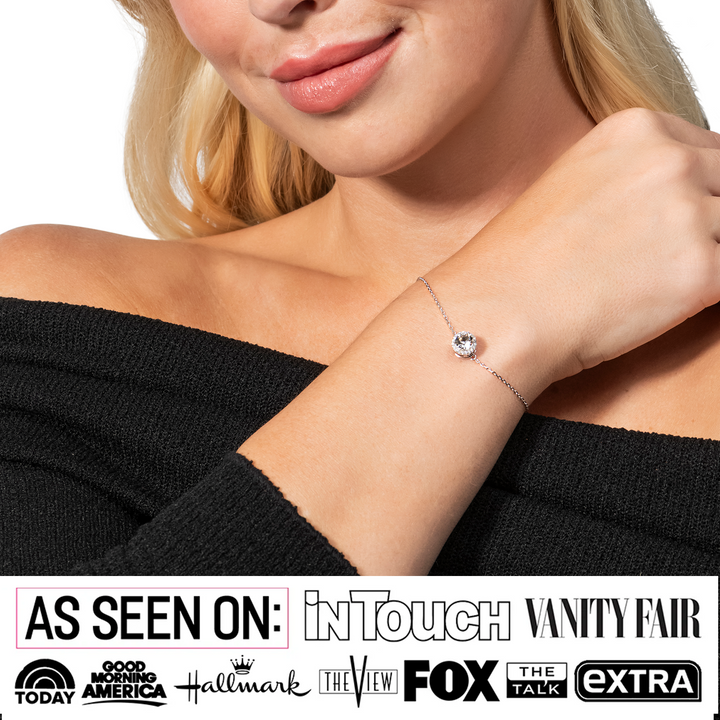 This Blake Halo Bracelet by Cate & Chloe brings an exquisite balance of refinement and radiance. A prominent solitaire crystal framed by a delicate halo of accent stones rests at the heart of the bracelet, creating a timeless piece that shimmers with grace and elegance.