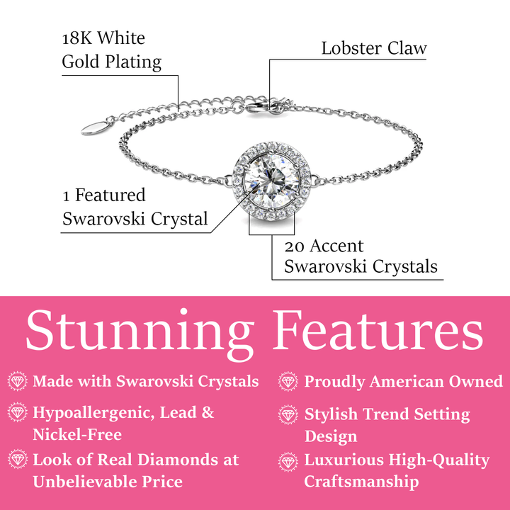Blake 18k White Gold Plated Halo Bracelet with Swarovski Crystals