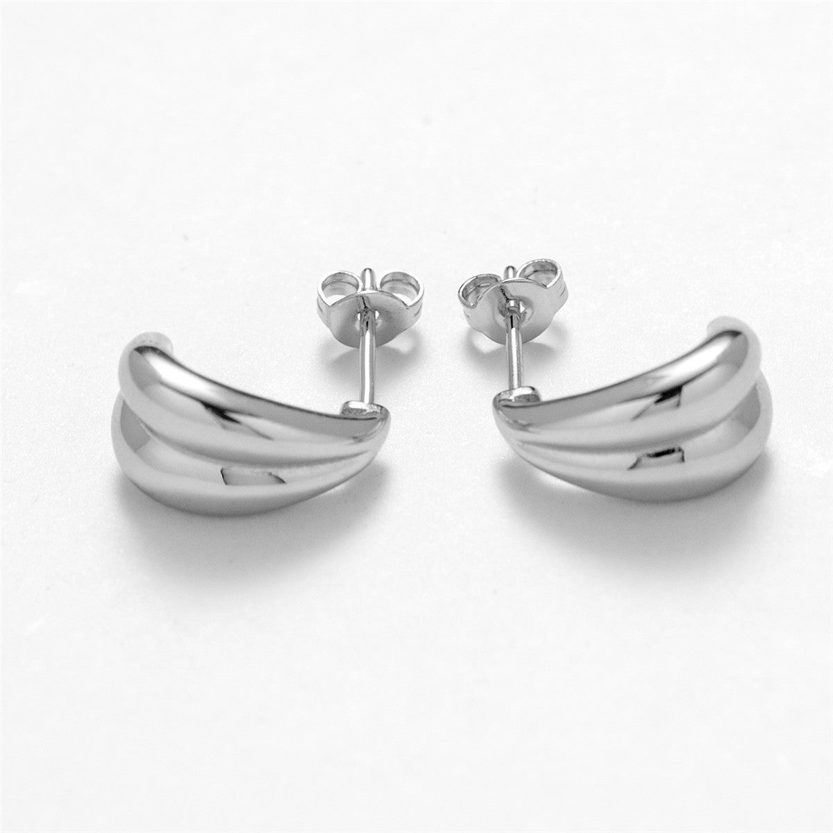 Shae 18k White Gold Plated Semi-Hoop Curved Stud Earrings
