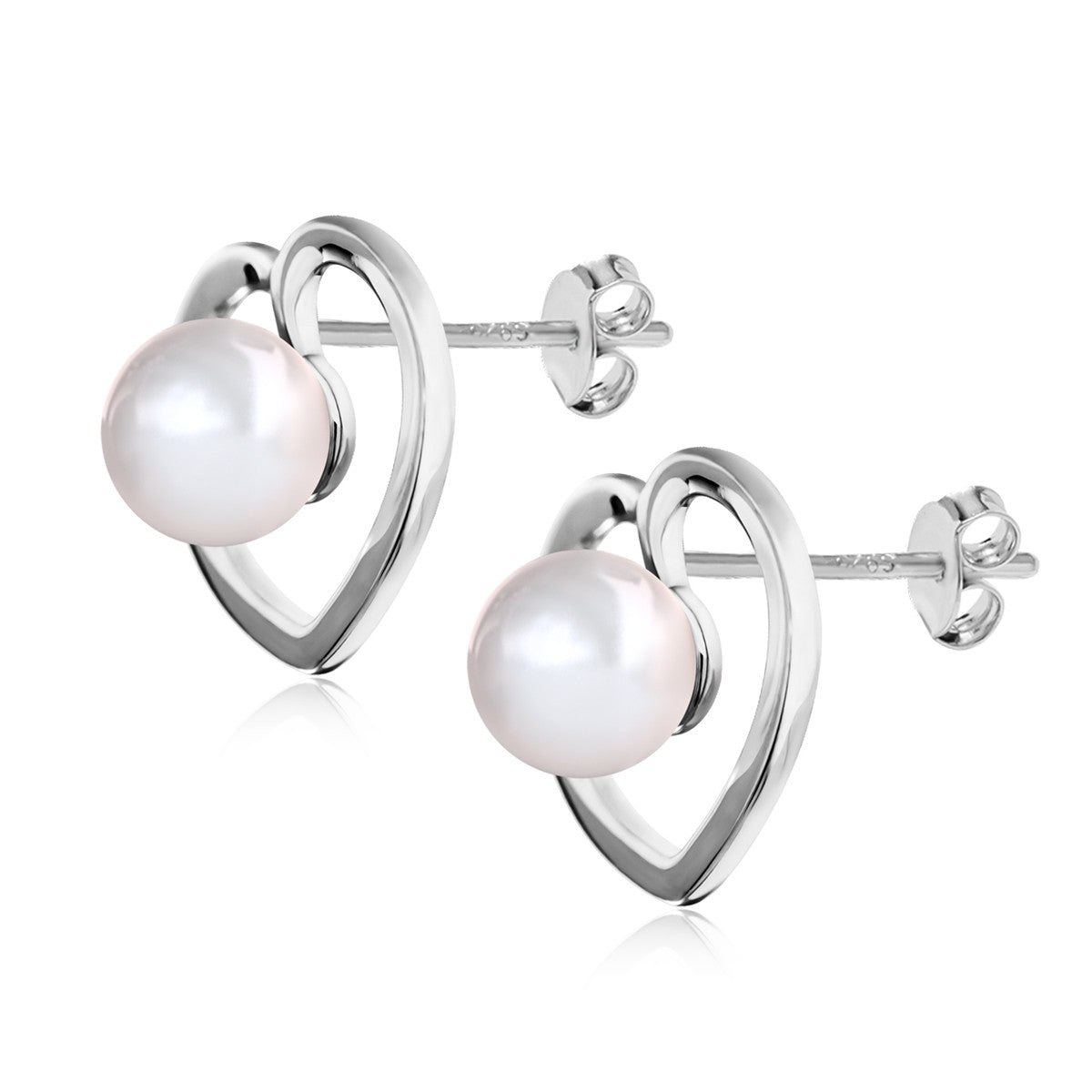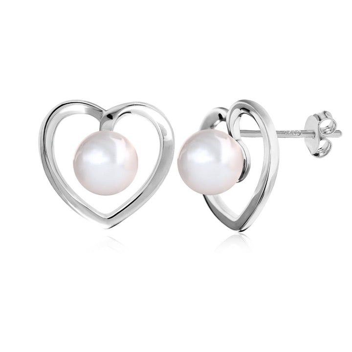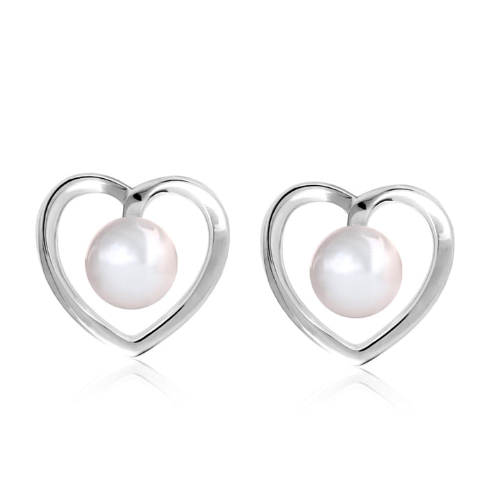 Harley 18k White Gold Plated Heart Stud Earrings with Shell Pearls