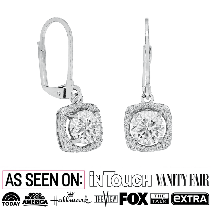 These Freya 18k White Gold Plated Halo Drop Earrings by Cate & Chloe are a celebration of light and form. The halo design encircles brilliant simulated crystals with soft shimmer, offering a classic silhouette with a luminous twist. Feminine and radiant, these are destined for treasured moments.