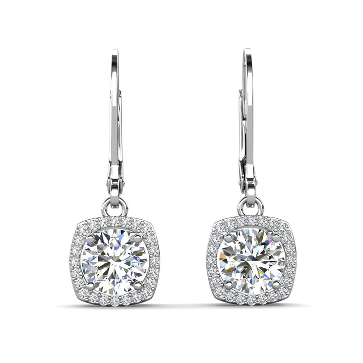Freya 18k White Gold Plated Halo Drop Earrings with Simulated Diamond Crystals