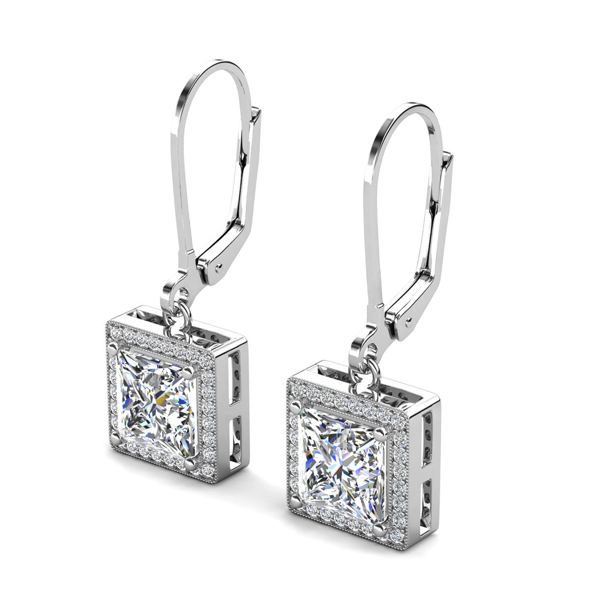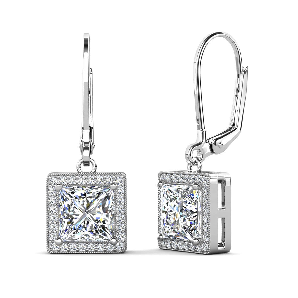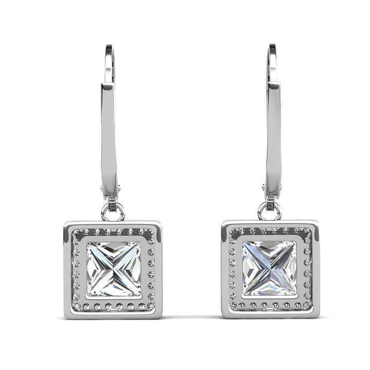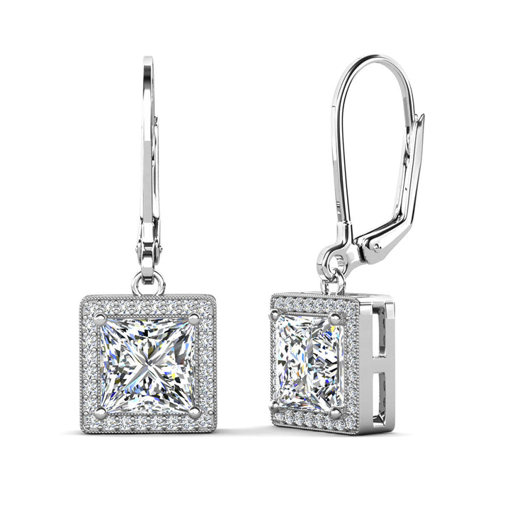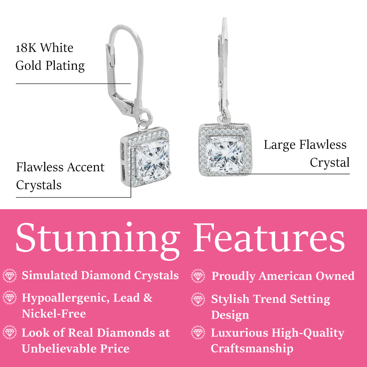 Maeve 18k White Gold Plated Drop Dangle Halo Earrings with Simulated Diamond Crystals