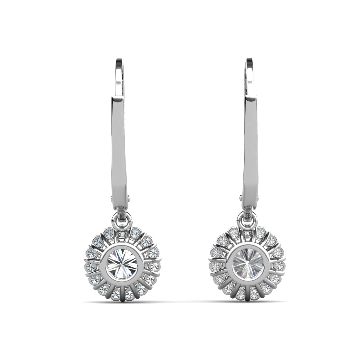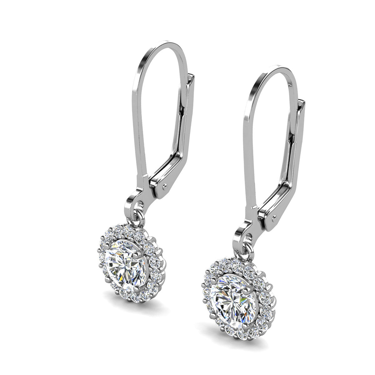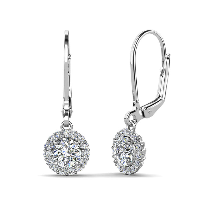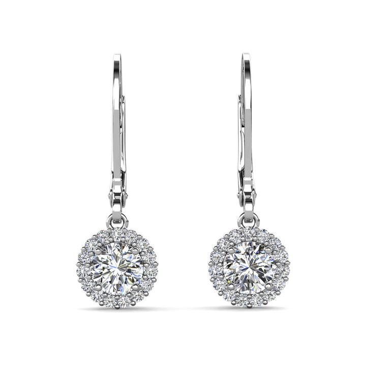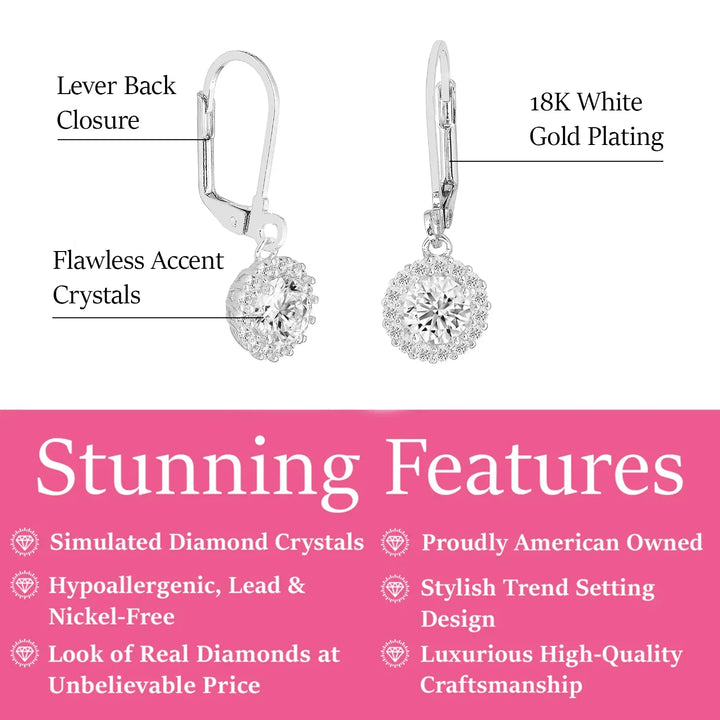 Michelle 18k White Gold Plated Halo Drop Earrings with Simulated Diamond Crystals