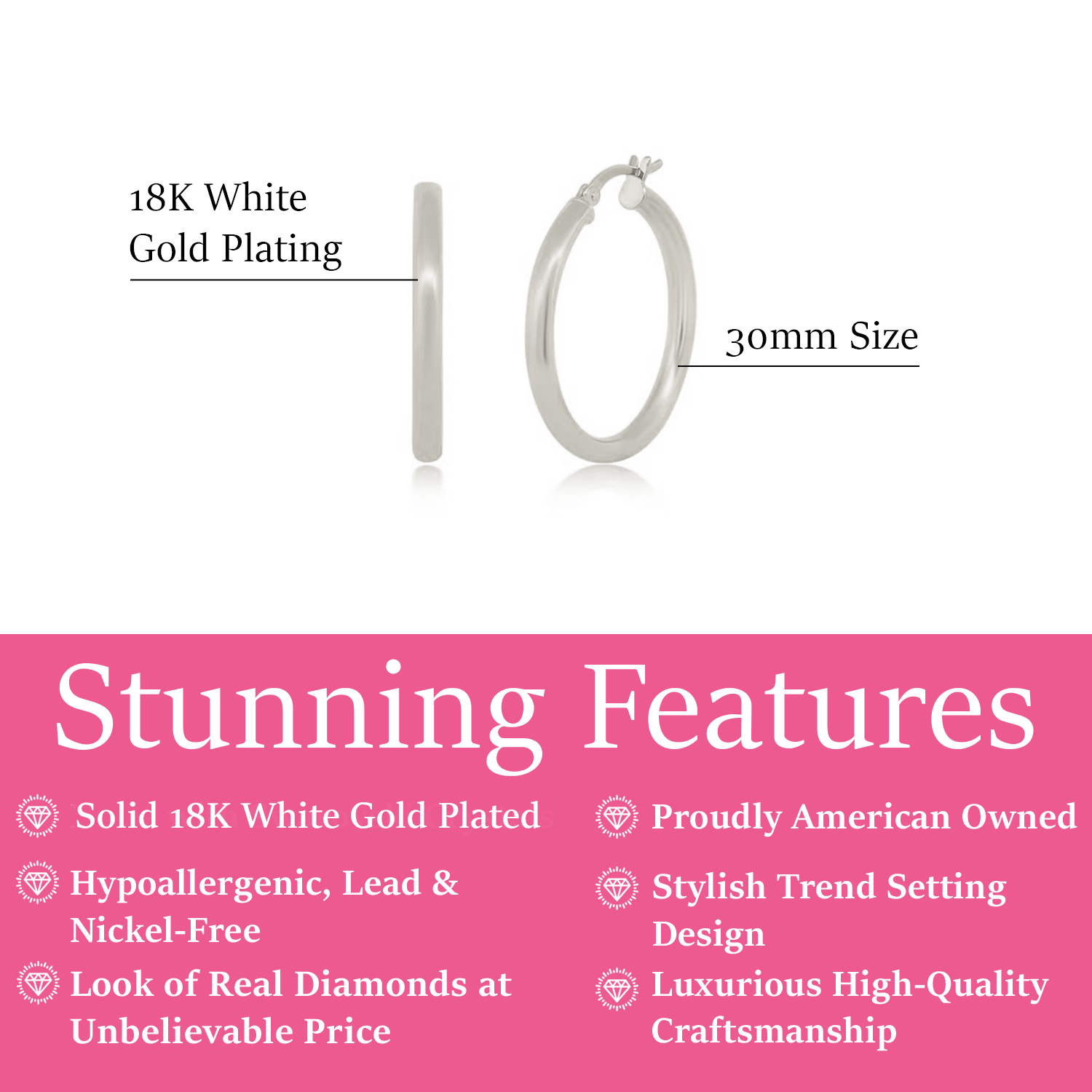 Amy 18k White Gold Plated 20mm/30mm Hoop Earrings