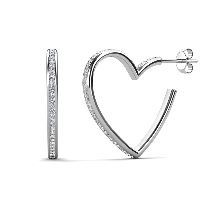 Sylvia 18k White Gold Plated 25mm Heart Hoop Earrings with Swarovski Crystals