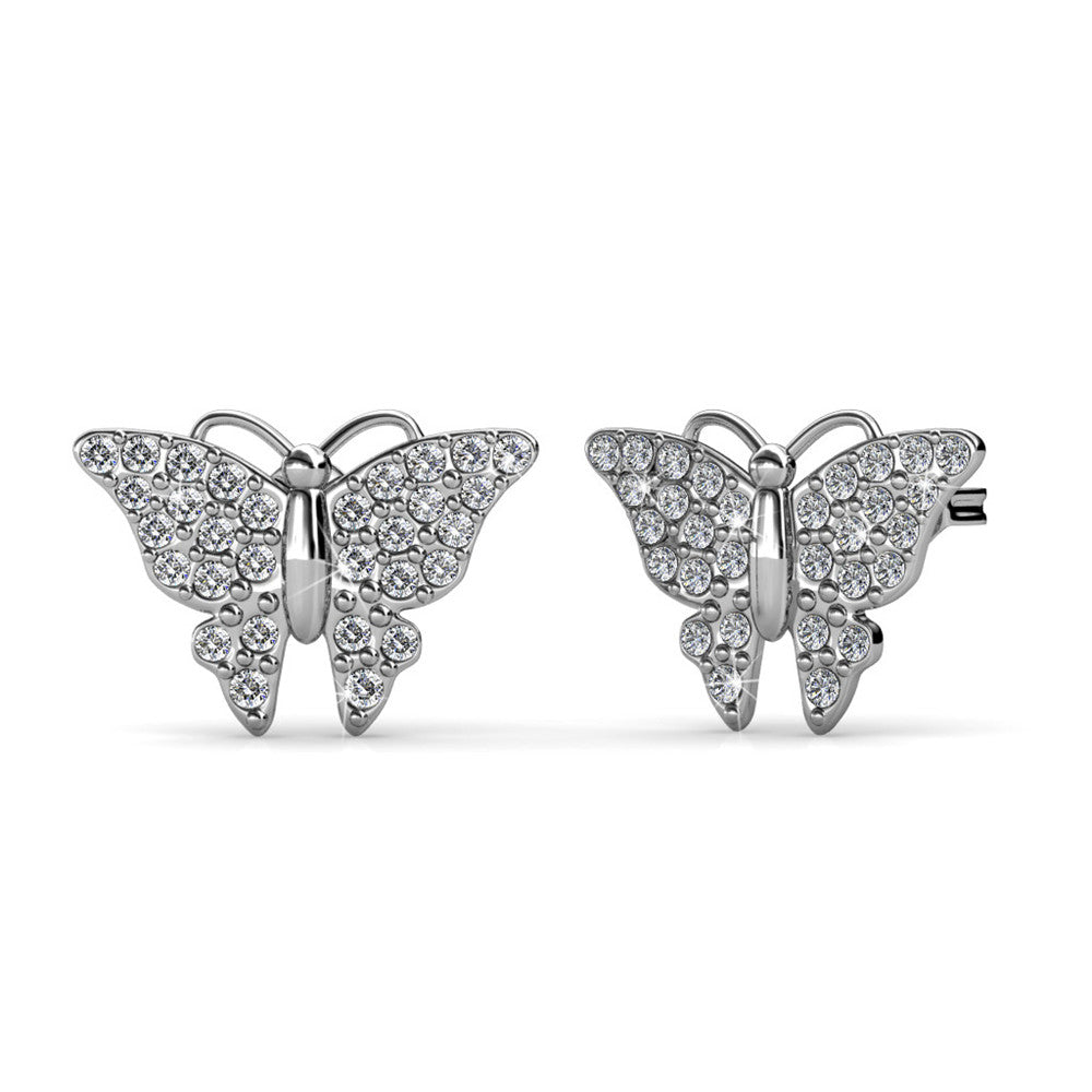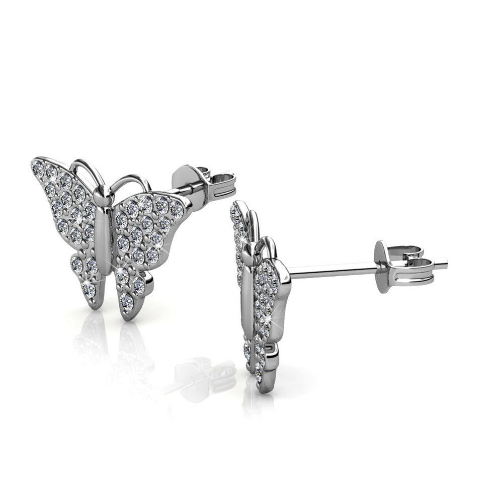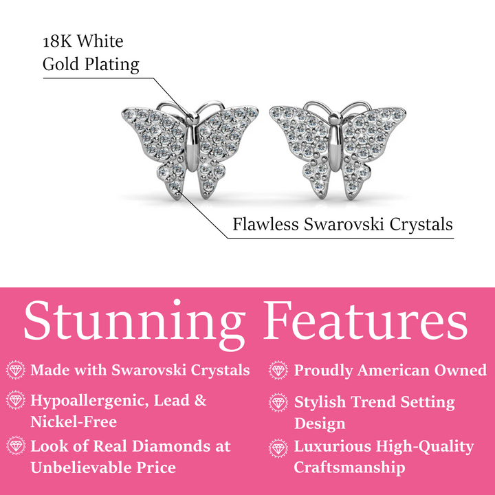 Everlee 18k White Gold Plated Crystal Butterfly Stud Earrings with Swarovski Crystals