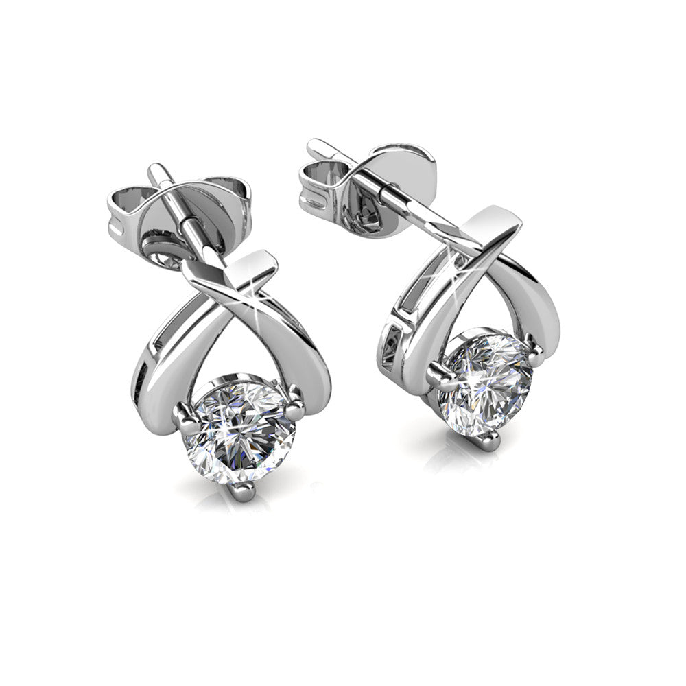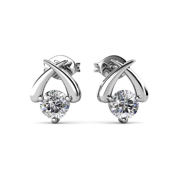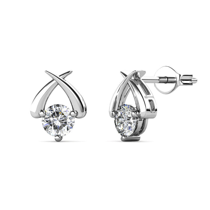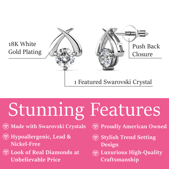 Eloise 18k White Gold Plated Stud Earrings with Solitaire Round Cut Swarovski Crystal