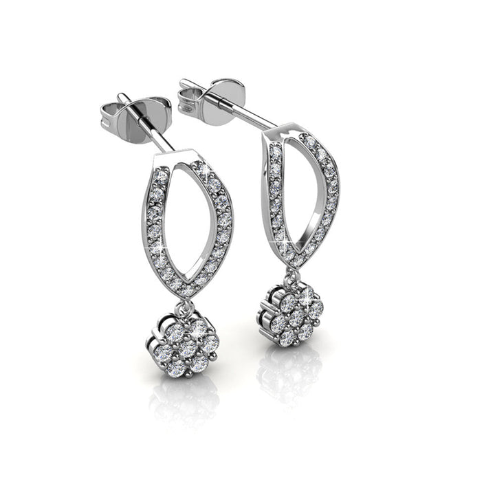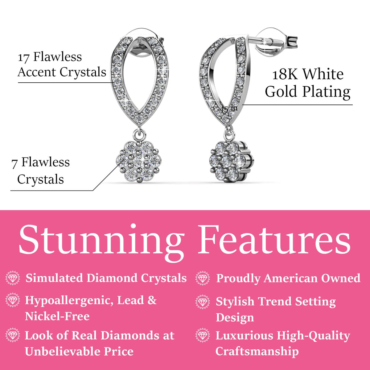 Megan 18k White Gold Plated Diamond Dangle Stud Earrings with Swarovski Crystals