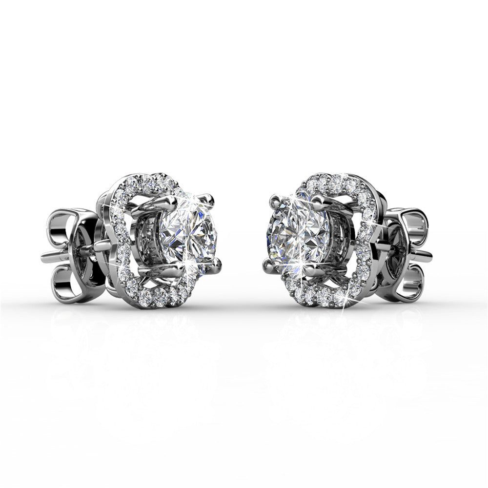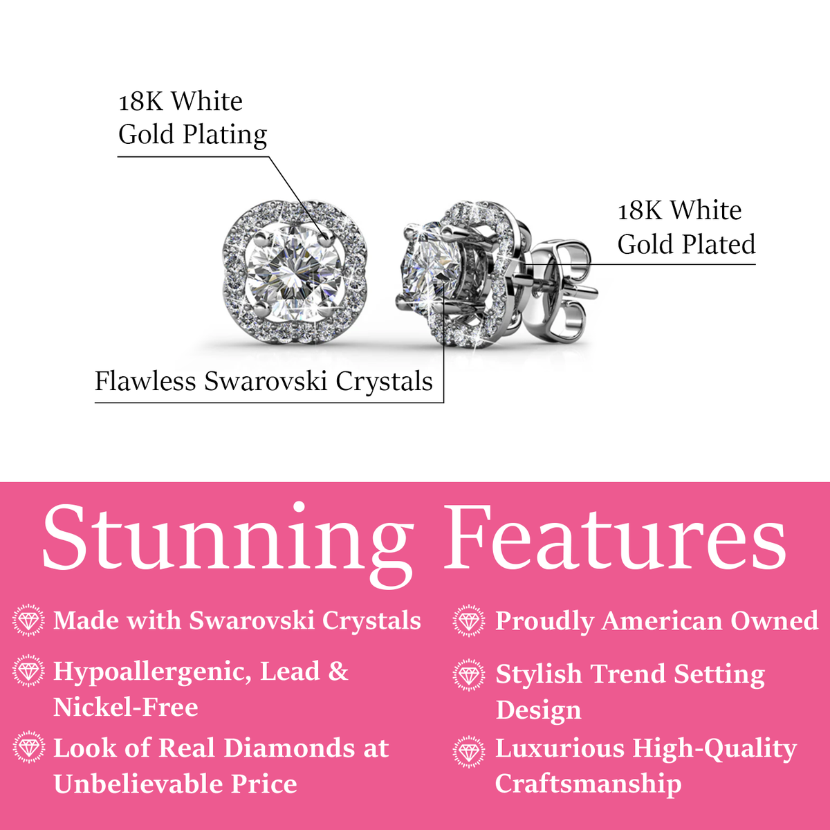 Haddie 18k White Gold Plated 2-in-1 Halo Stud Earrings with Swarovski Crystals