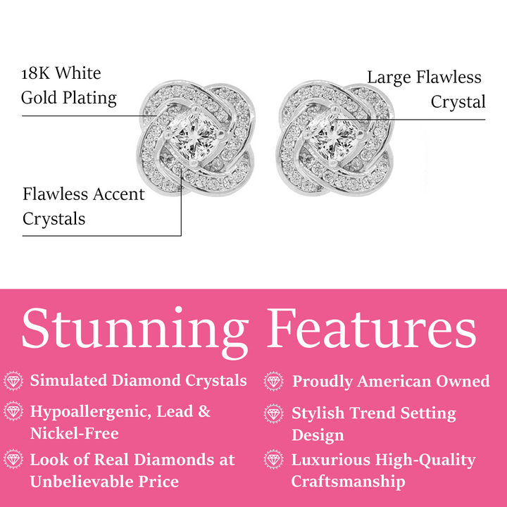 Stella 18k White Gold Plated Stud Earrings with Simulated Diamond Crystals