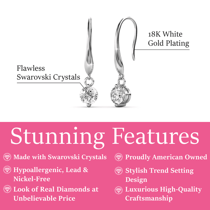 Veronica 18k White Gold Plated Drop Earrings with Swarovski Crystals