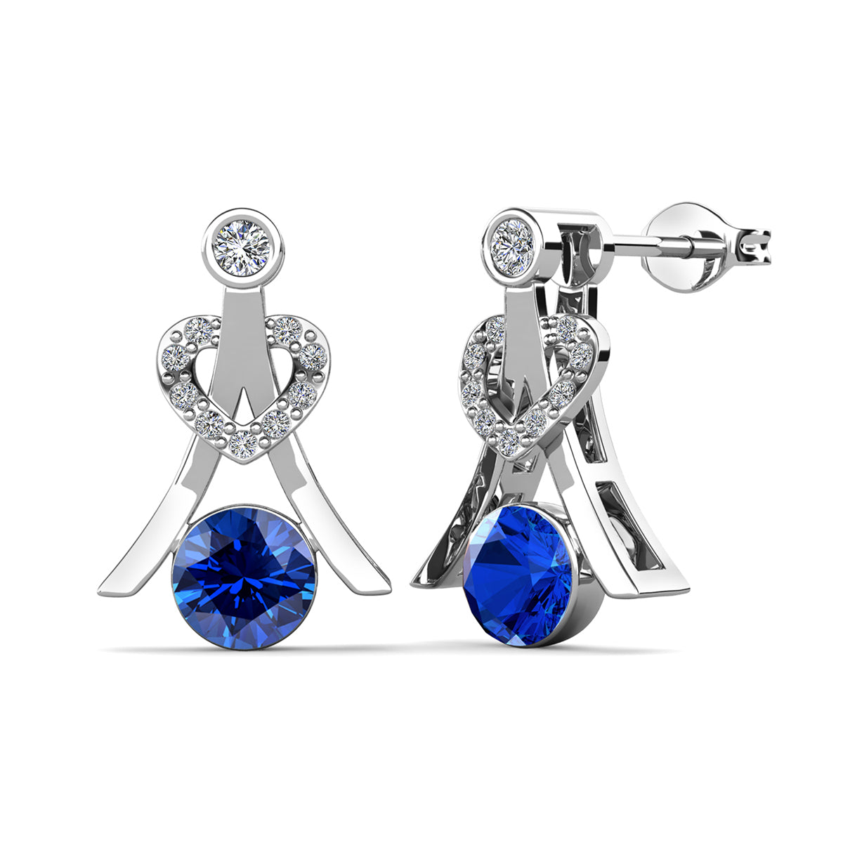 Serenity September Birthstone Sapphire Earrings 18k White Gold Plated Silver Earrings with Round Cut Swarovski Crystals
