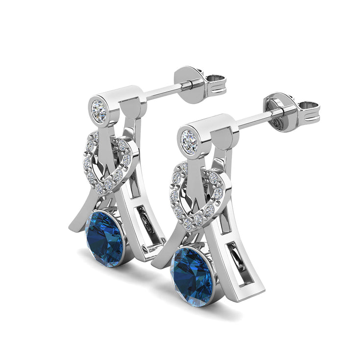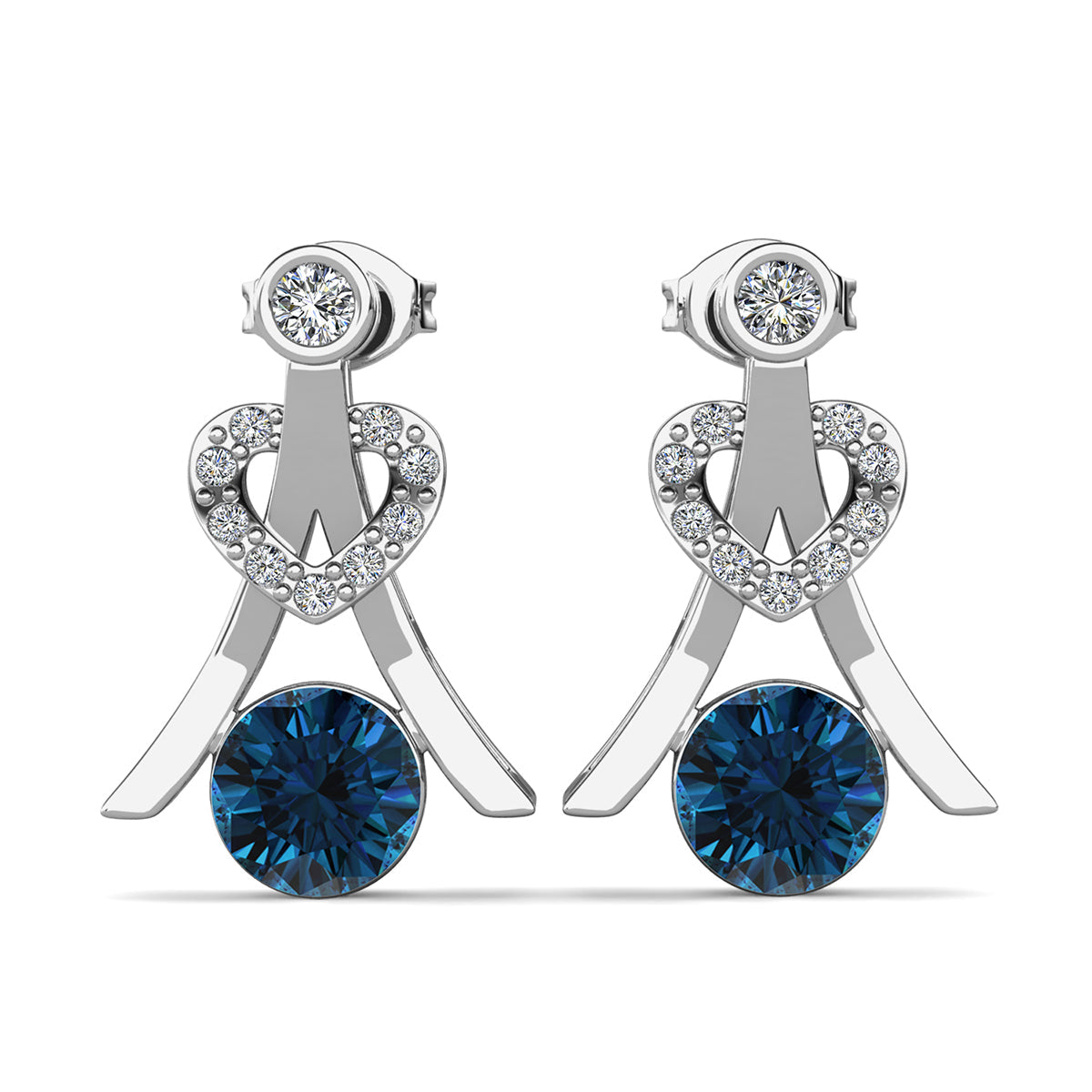 Serenity December Birthstone Blue Topaz Earrings 18k White Gold Plated Silver Earrings with Round Cut Swarovski Crystals