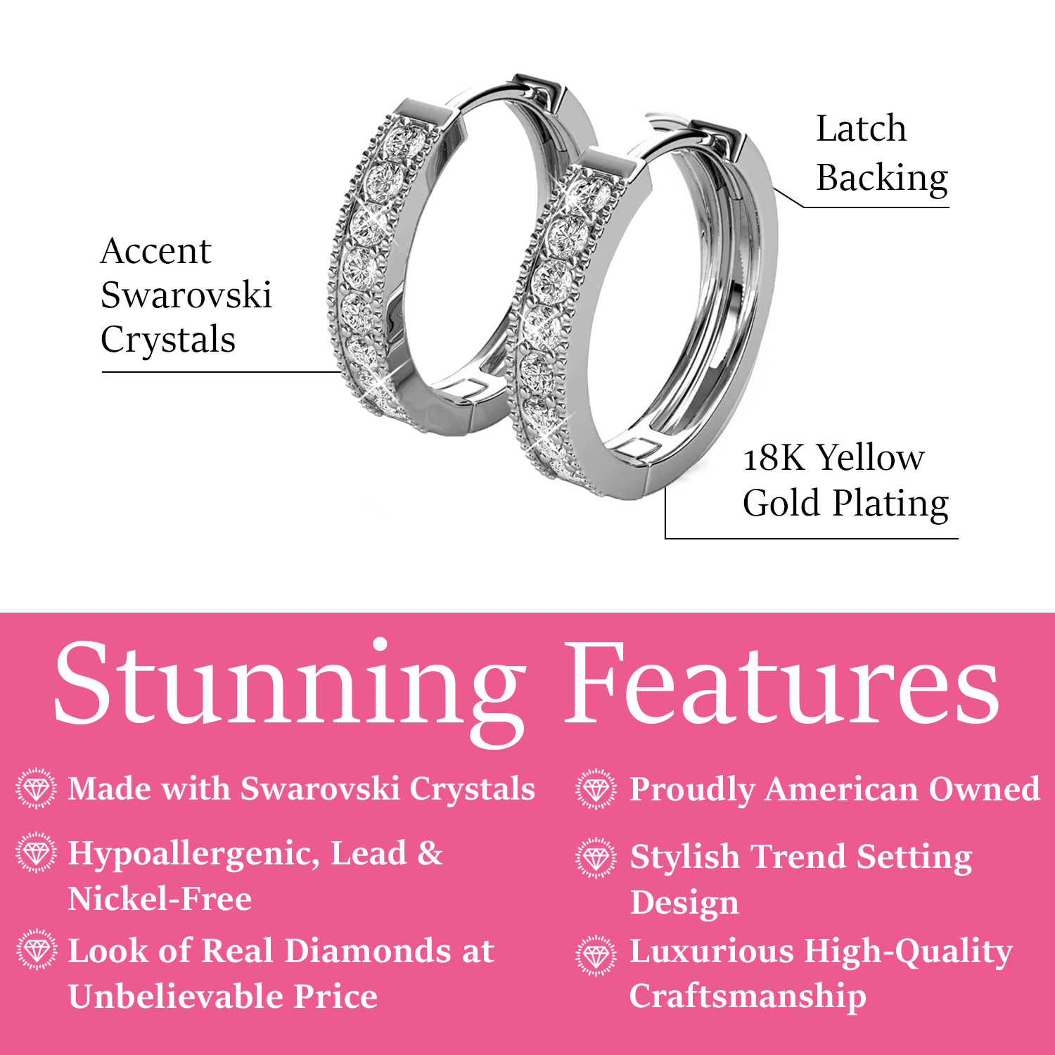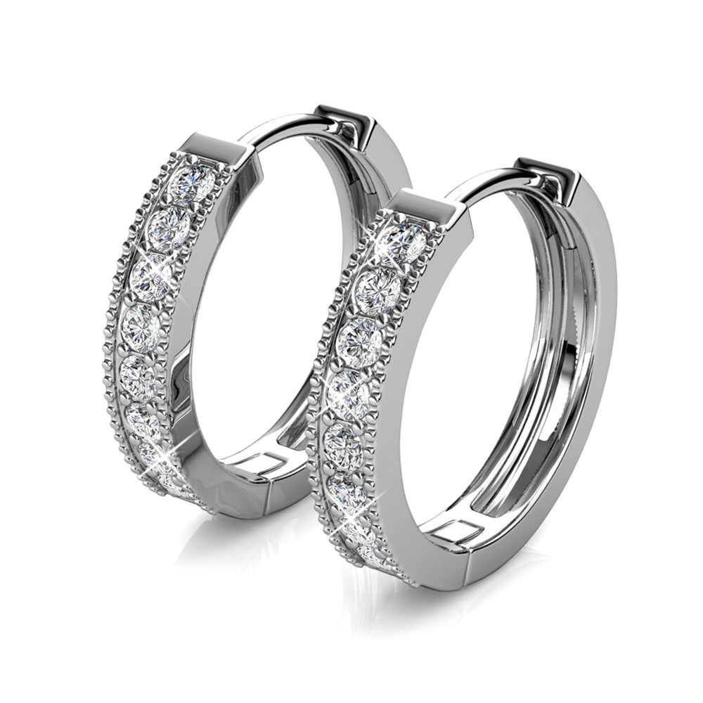 Lydia 18k White Gold Plated 16mm Hoop Earrings with Swarovski Crystals