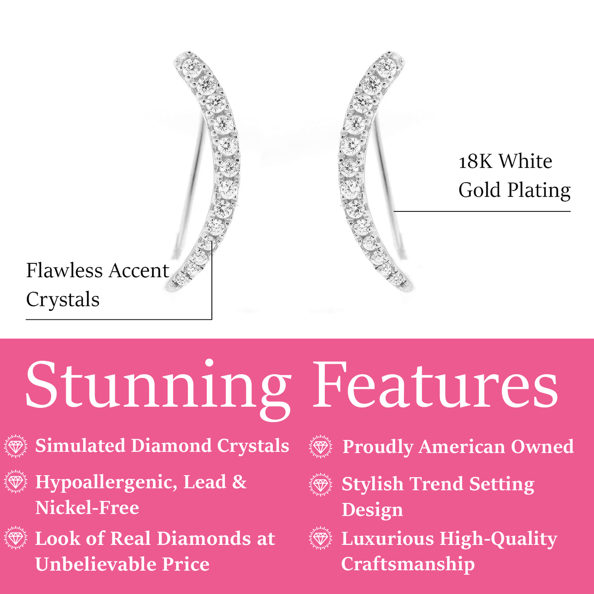 Camila 18k White Gold Plated Ear Climber Earrings with Simulated Diamond Crystals