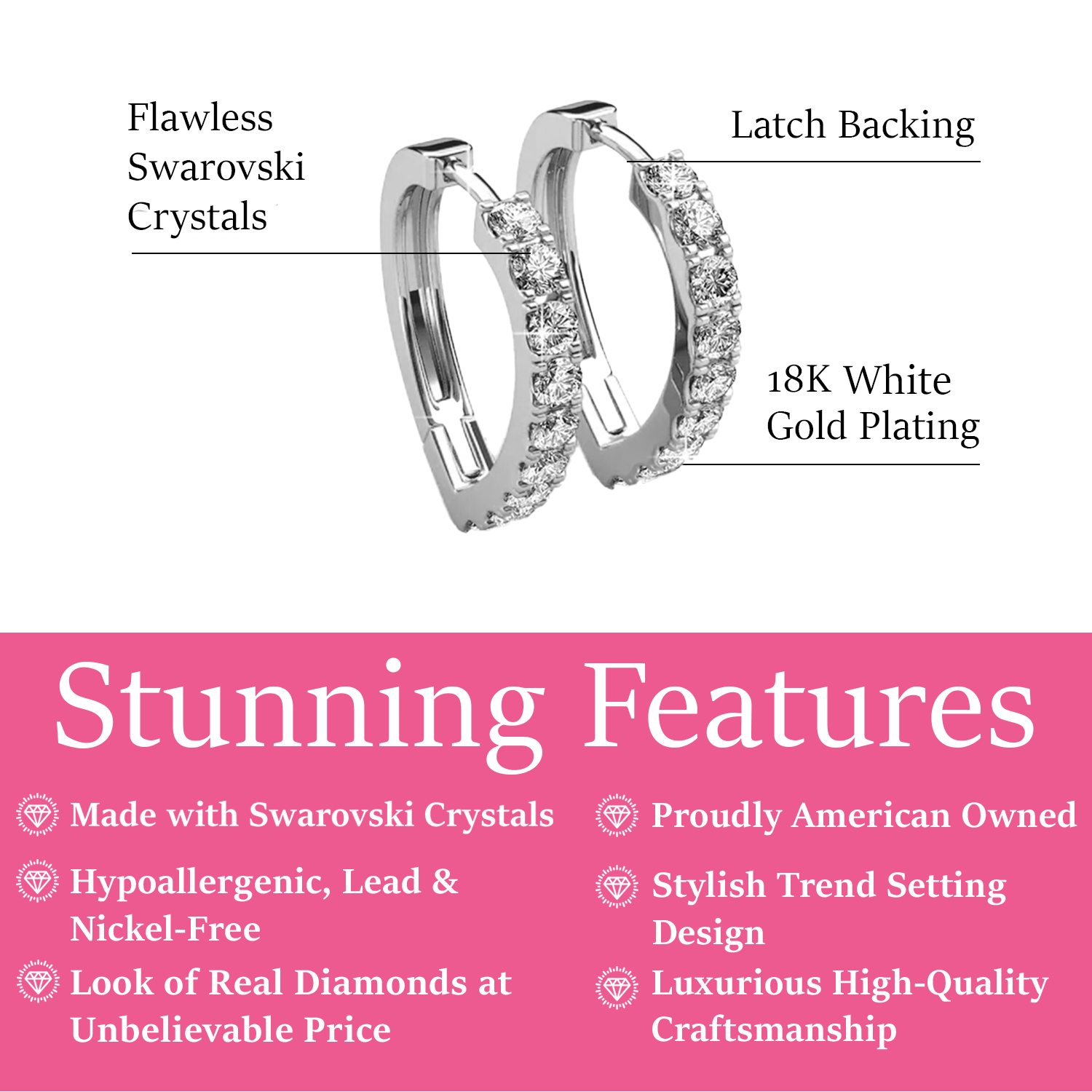 Waverly 18k White Gold Plated 16mm Hoop Earrings with Swarovski Crystals