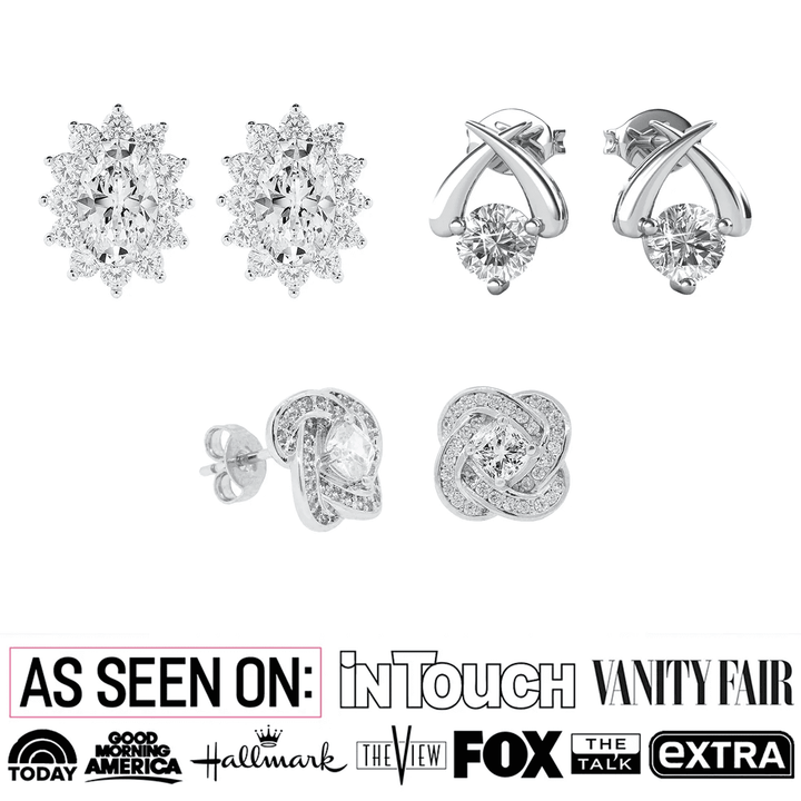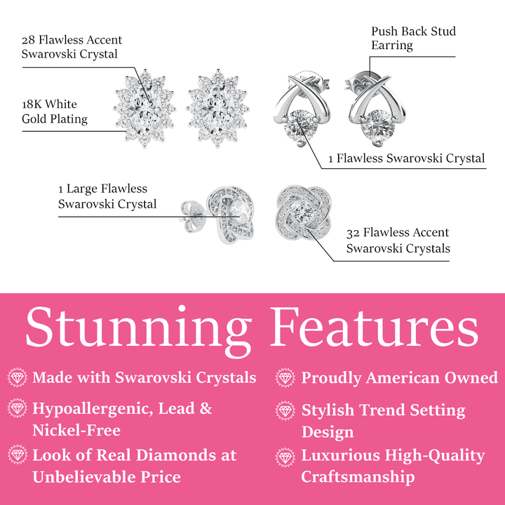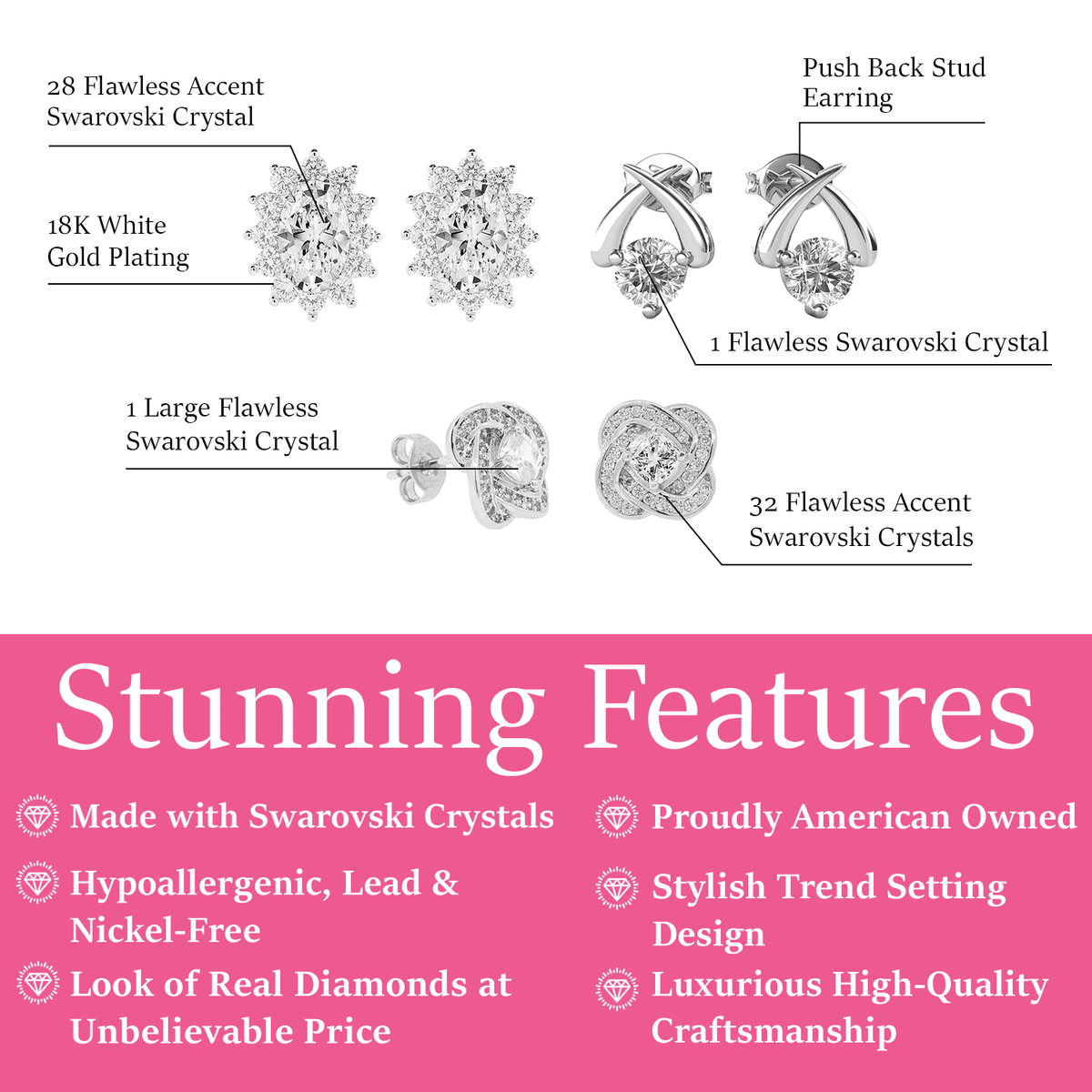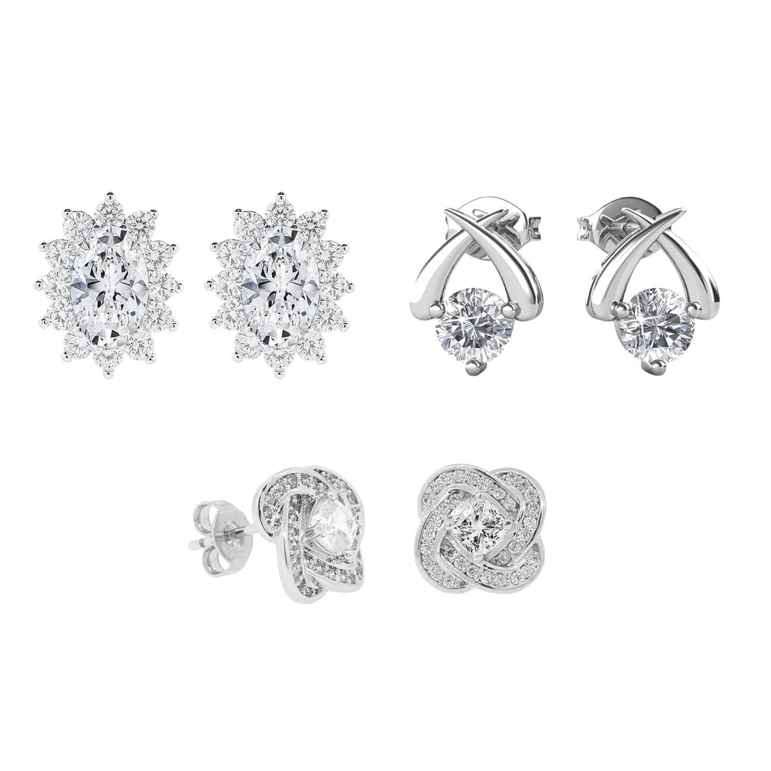 Cate & Chloe Earrings Pack of 3 - Eloise, Stella, Sage 18k White Gold Plated Stud Earrings
