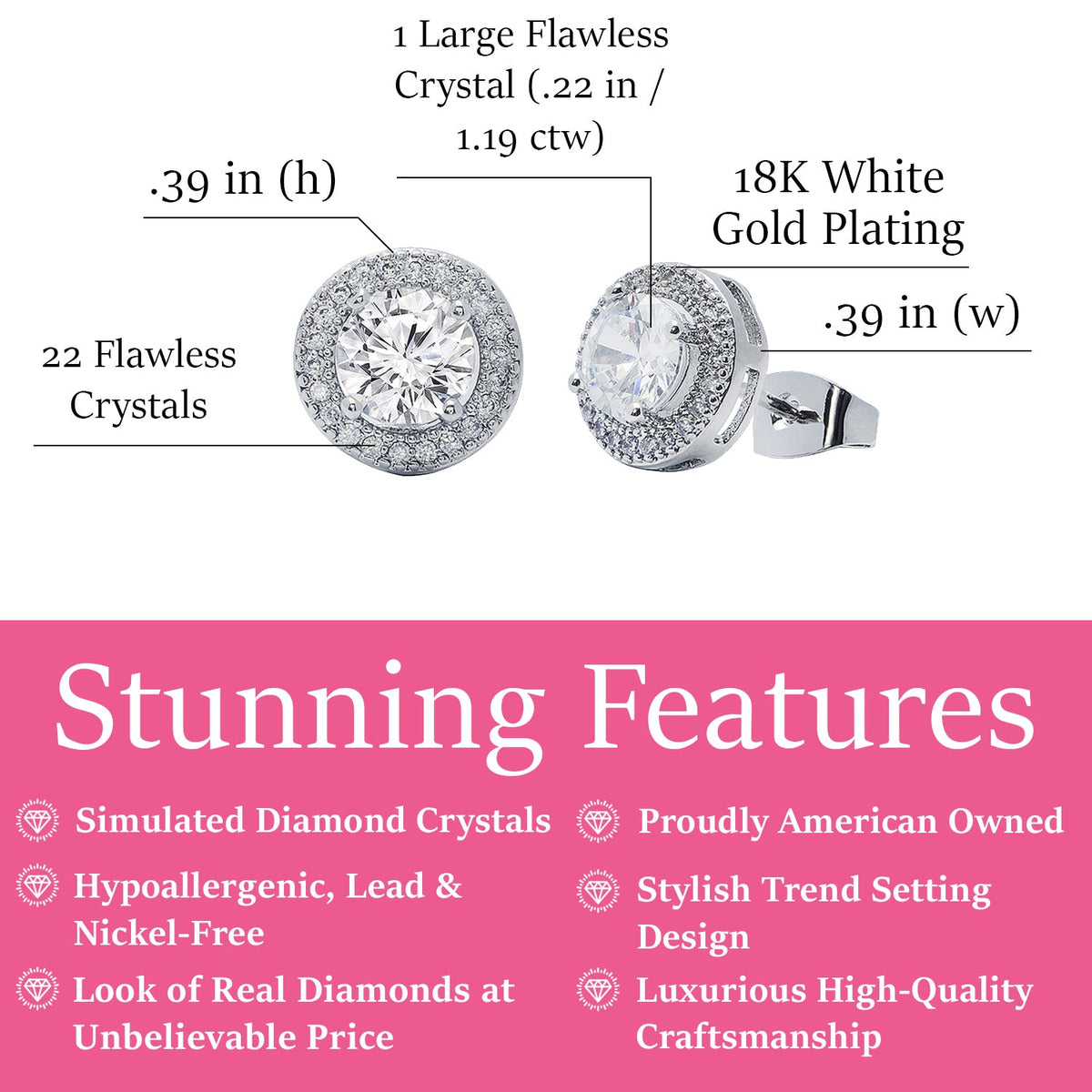 Ariel 18k White Gold Plated Halo Stud Earrings with Simulated Diamond Crystals