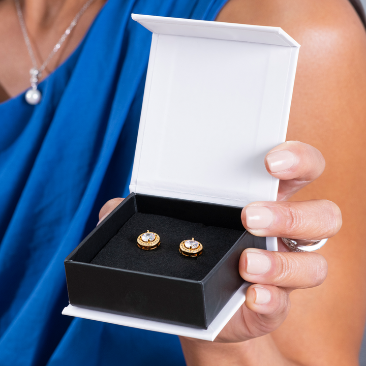 These Ariel Earrings by Cate & Chloe capture the serenity and shimmer of ocean waves in a dazzling halo design. A 5.5mm center stone is encircled by 34 crystal accents, evoking the elegance of vintage glamour with a modern twist. Perfect for special occasions or to bring light to your everyday ensemble, these studs evoke tranquility and strength—making them both statement-making and timeless.