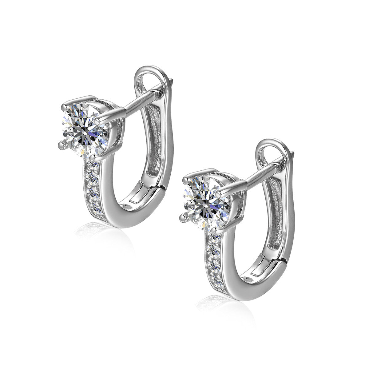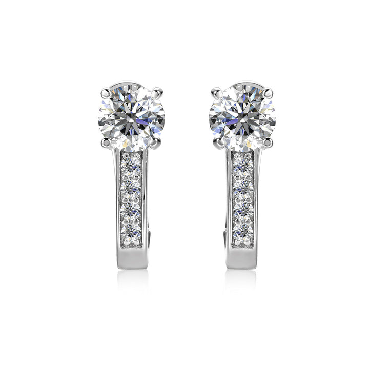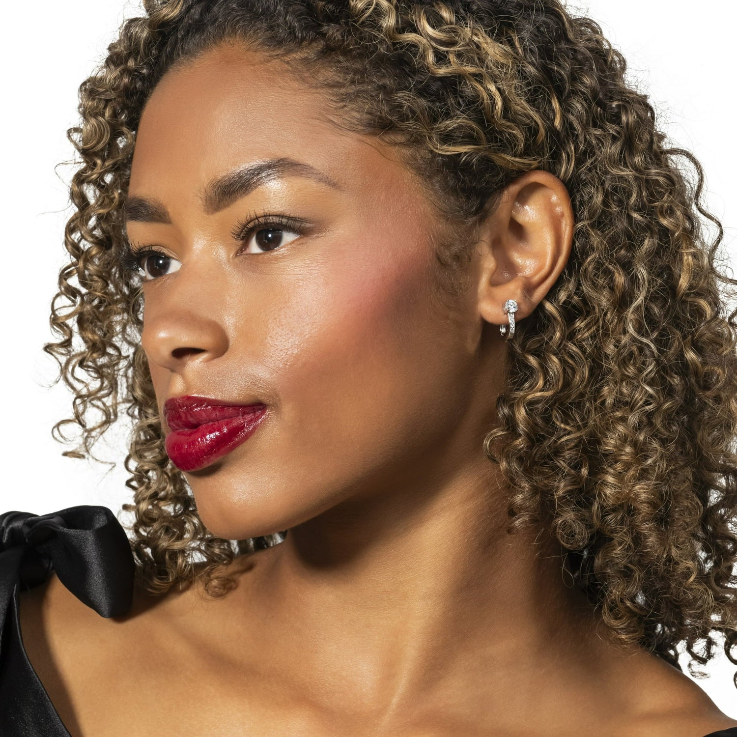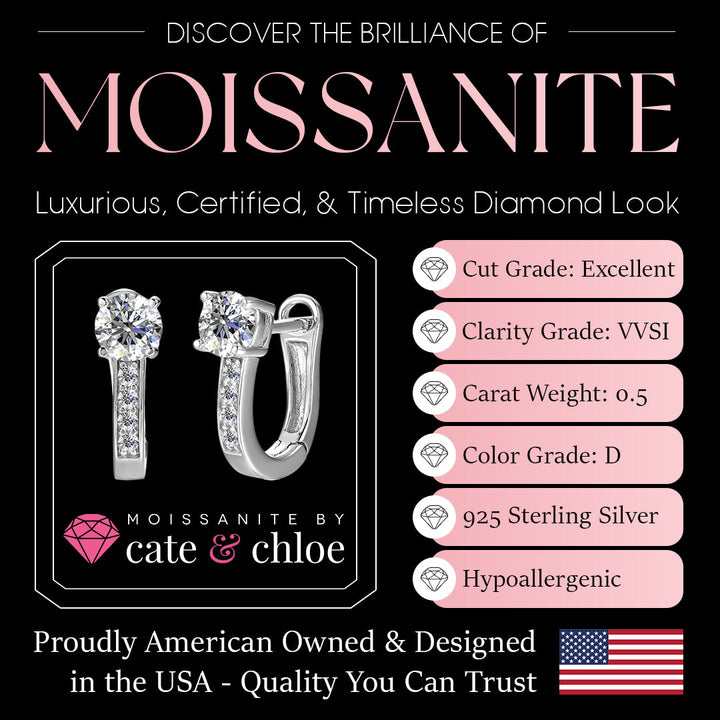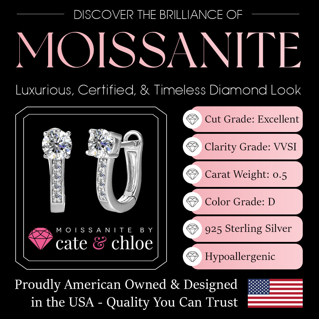 These Genesis Hoop Earrings by Cate & Chloe blend classic design with radiant modern flair. Featuring two 0.5ct moissanite stones and eight accent crystals, they offer stunning brilliance in a compact, elegant hoop. Perfect for daily wear or refined evenings, Genesis brings understated glamor to every look.