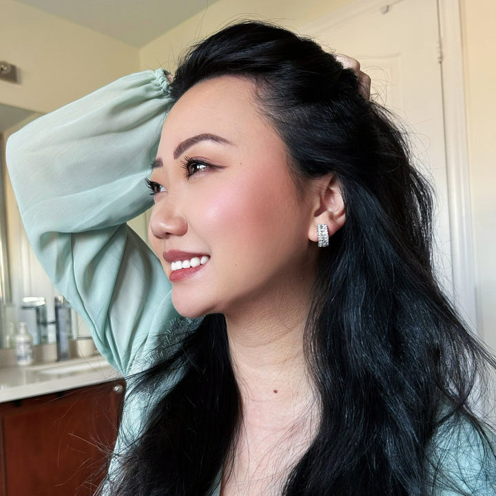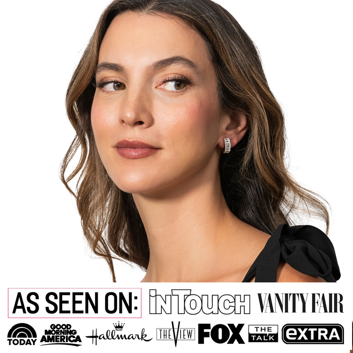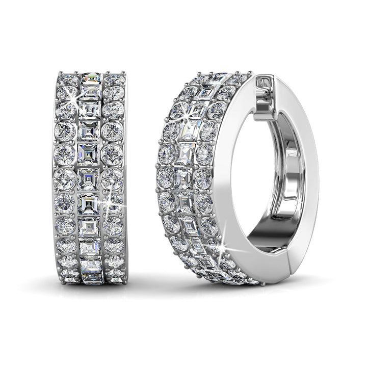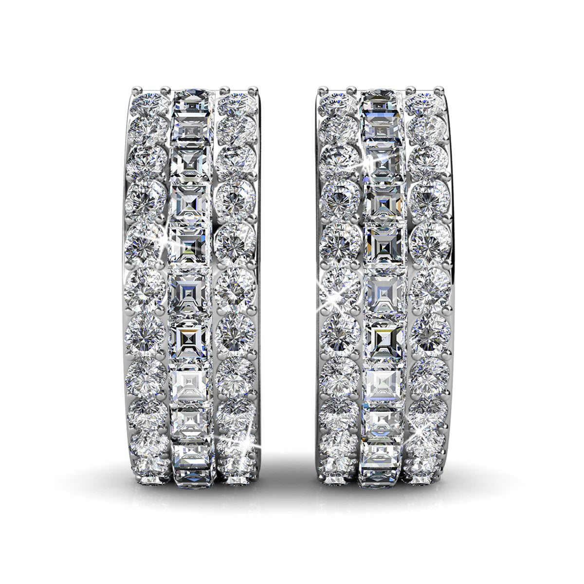 These Wrenley Hoop Earrings by Cate & Chloe elevate the classic hoop with an artful mix of 24 square-cut and 48 round-cut Swarovski crystals. The 16mm profile delivers both impact and wearability. A versatile statement that’s equal parts modern shimmer and refined grace.
