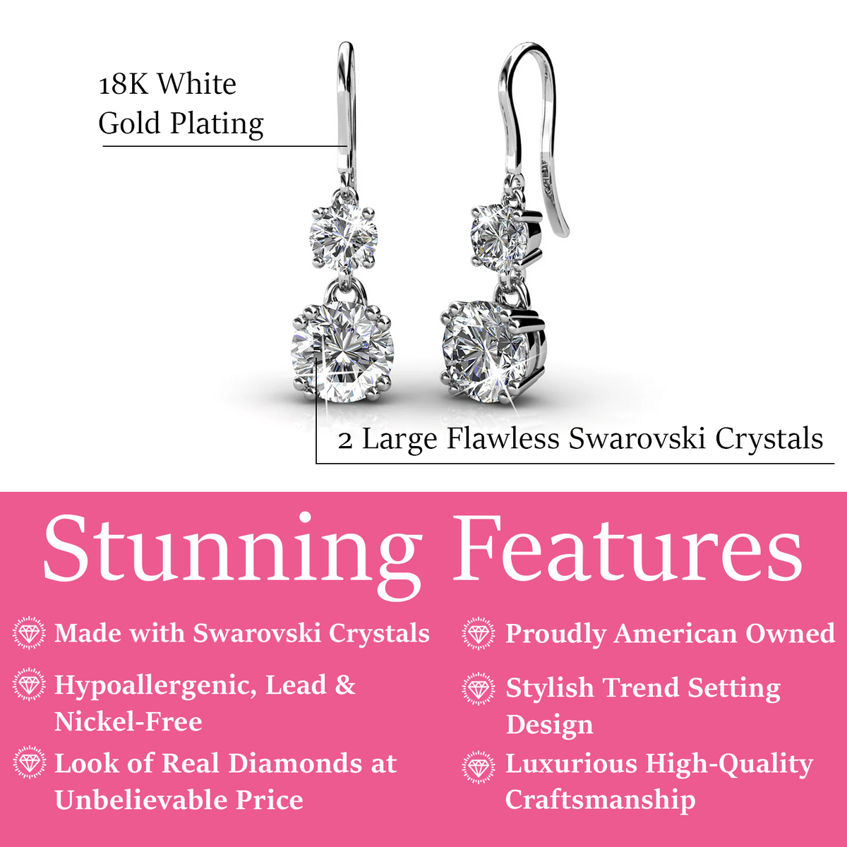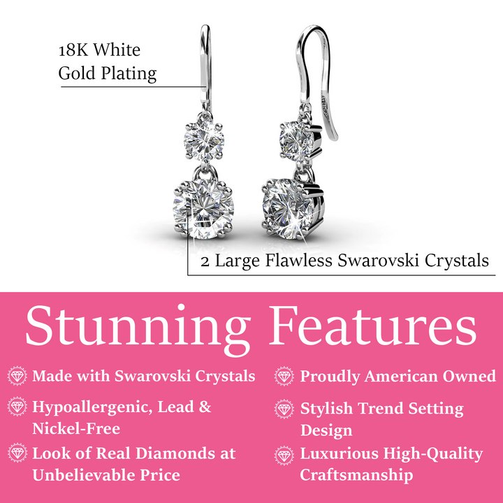 Kadence 18k White Gold Plated Drop Dangle Earrings with Swarovski Crystals