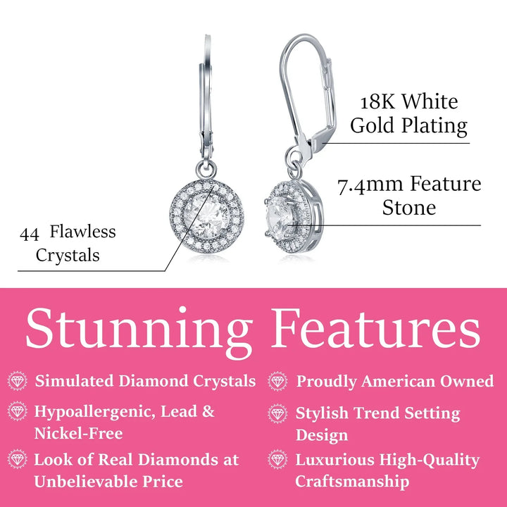 Juliana 18k White Gold Plated Halo Dangle Earrings with Round Cut Simulated Diamond Crystals