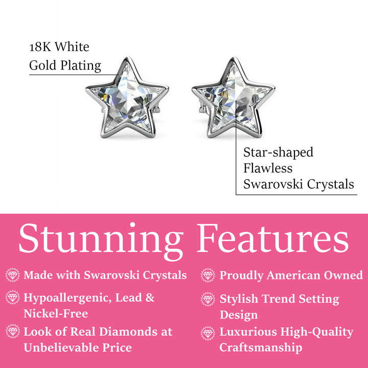 These Lealani Stud Earrings by Cate & Chloe are a minimalist’s dream with celestial charm. Featuring two star-shaped Swarovski crystals, these earrings offer a whimsical sparkle and lightweight wearability. Designed to complement both solo styling and layered ear looks, they bring effortless elegance to every moment.