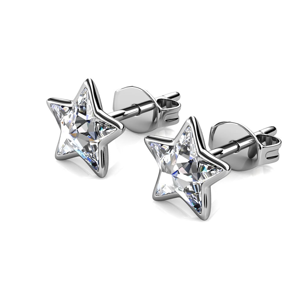 Crafted in 18k White Gold Plated brass. Set with 2 Swarovski feature stones. Backing: Push back. Hypoallergenic, lead-free, nickel-free. Includes C&C branded gift box.