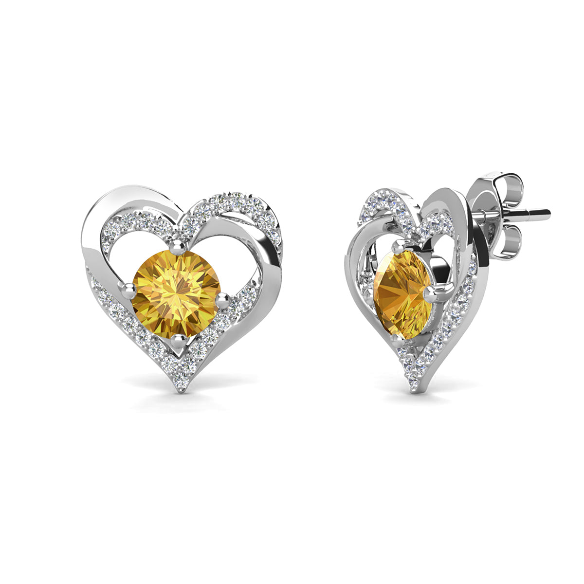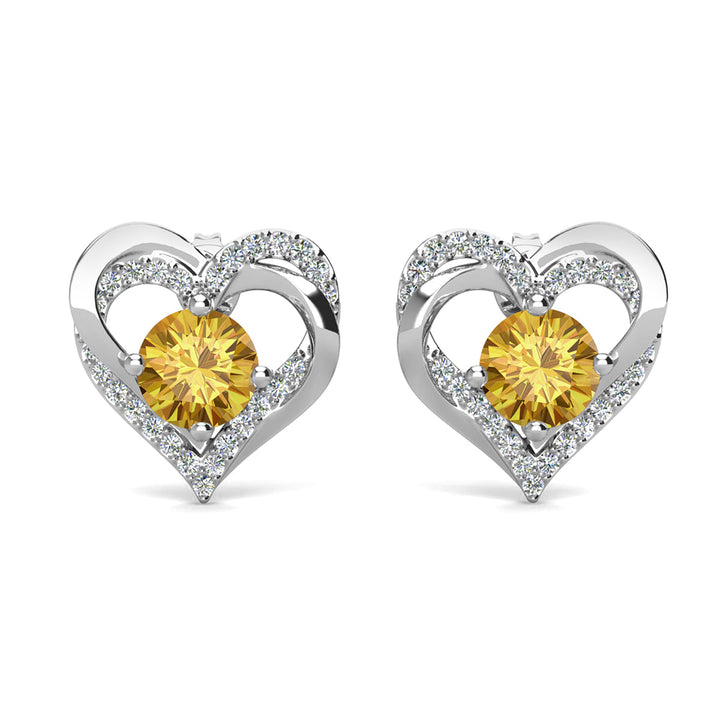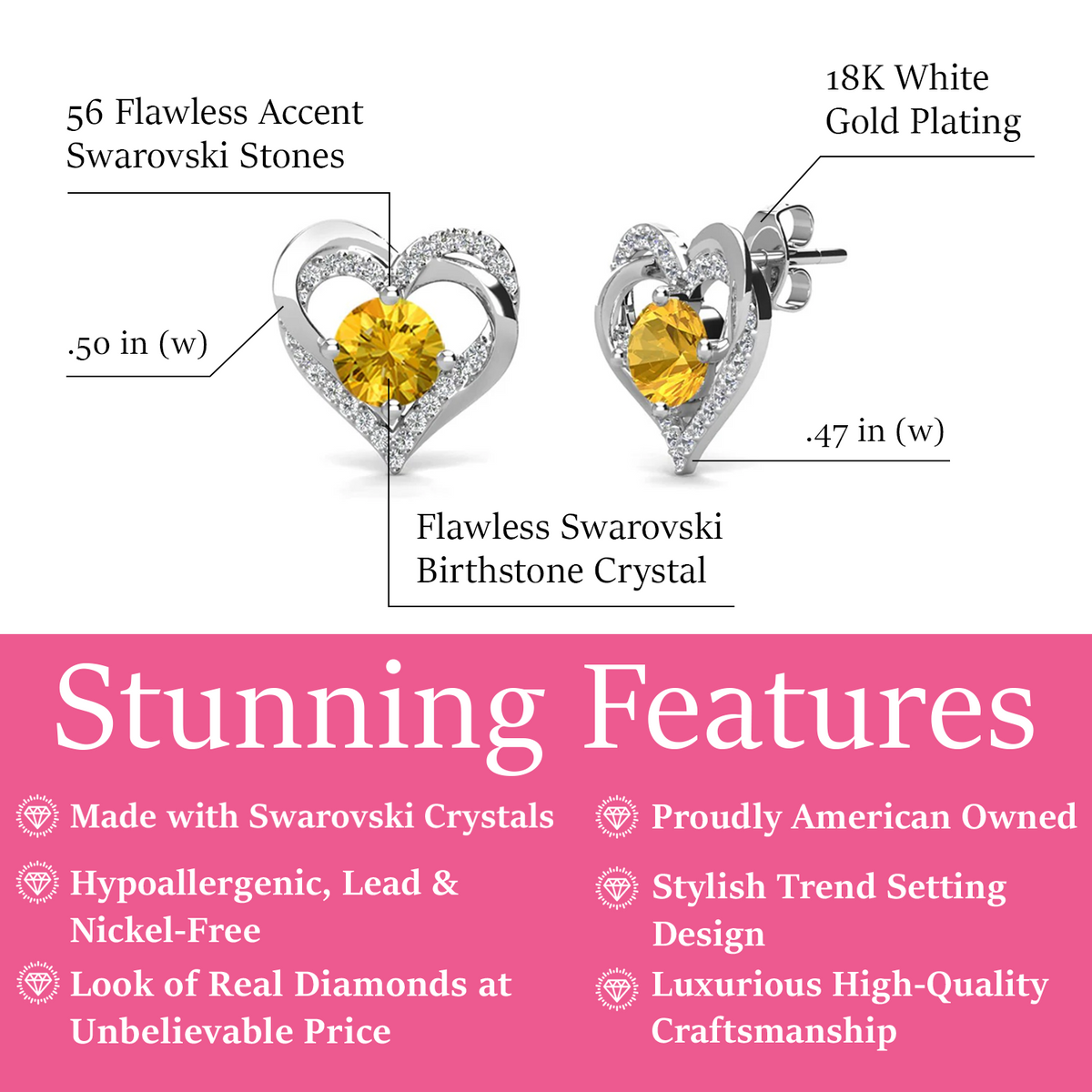 Forever November Birthstone Diamond 18k White Gold Plated Silver Double Heart Earrings with Swarovski Crystals