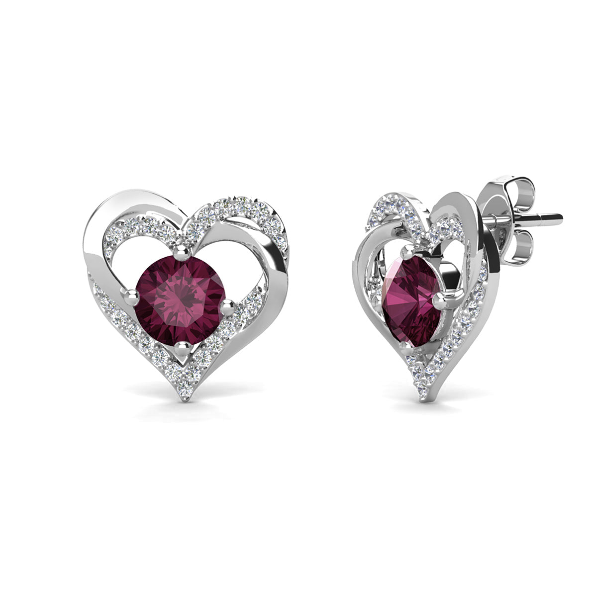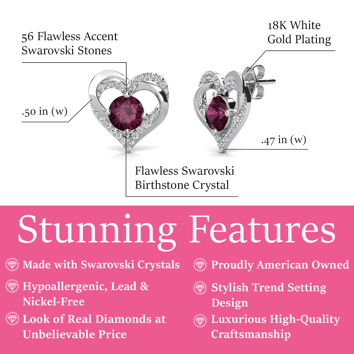 Forever February Birthstone Diamond 18k White Gold Plated Silver Double Heart Earrings with Swarovski Crystals