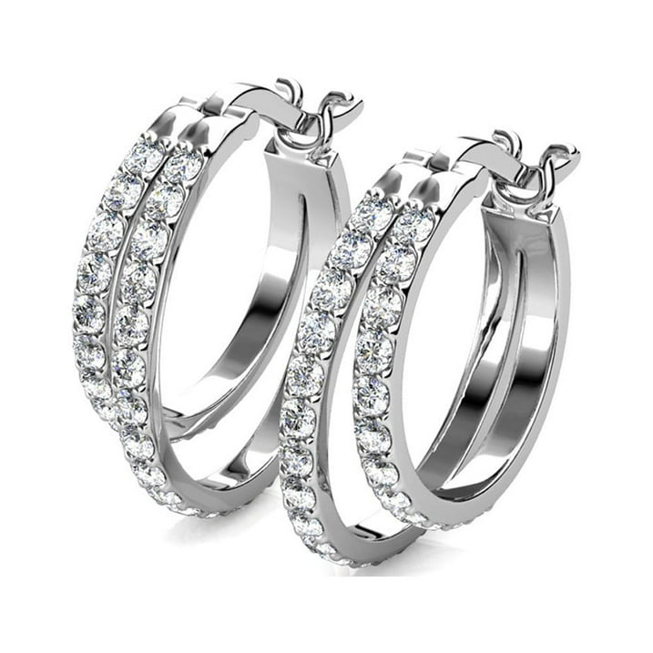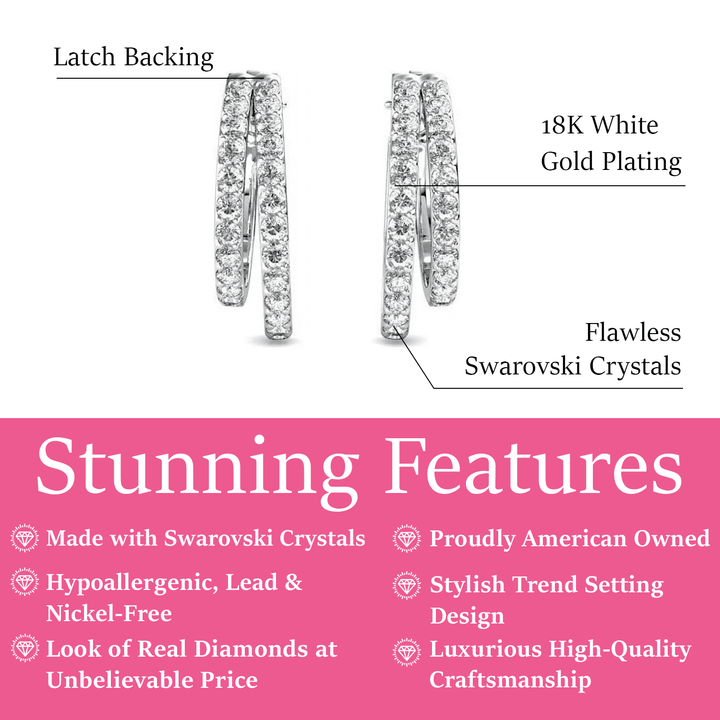 Corina 18k White Gold Plated 20mm Hoop Earrings with Swarovski Crystals