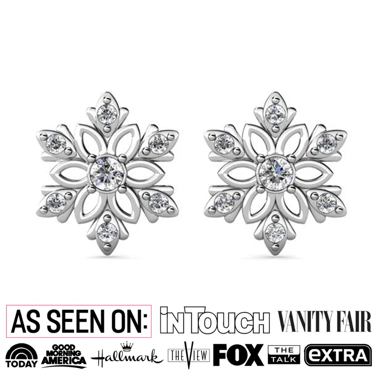 Made with 18k white gold plating over brass, adorned with 14 round-cut Swarovski® crystals. Backing: Push back. Hypoallergenic, lead & nickel free.
