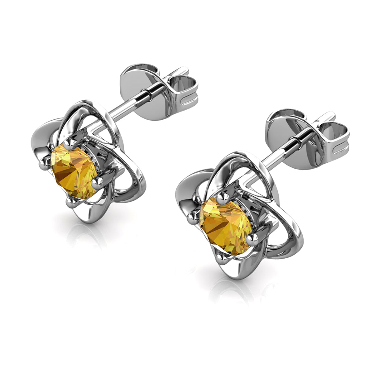 Infinity November Birthstone Citrine Earrings 18k White Gold Plated Silver Birthstone Earrings with Swarovski Crystals