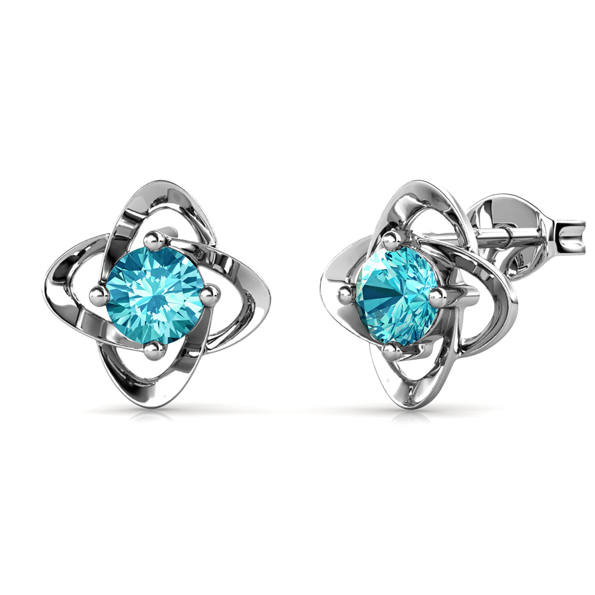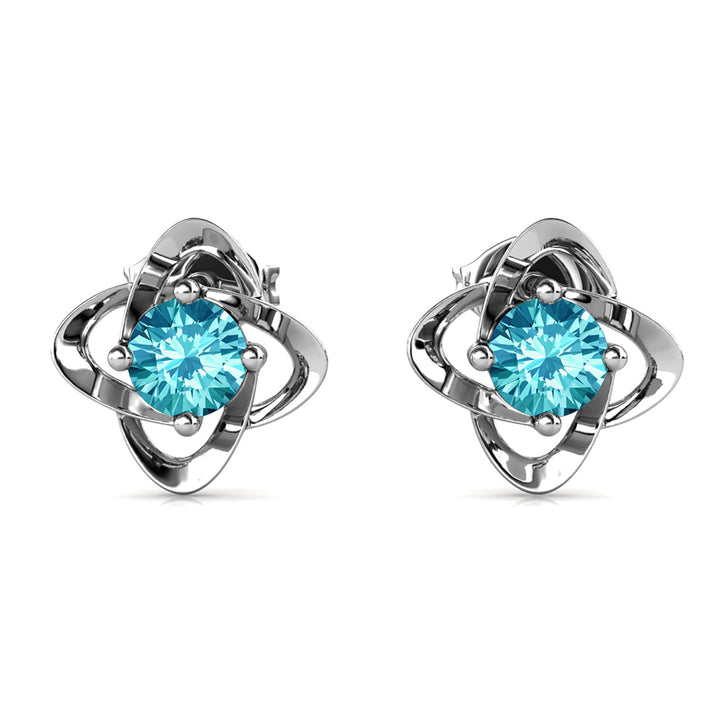 Infinity March Birthstone Aquamarine Earrings 18k White Gold Plated Silver Birthstone Earrings with Swarovski Crystal