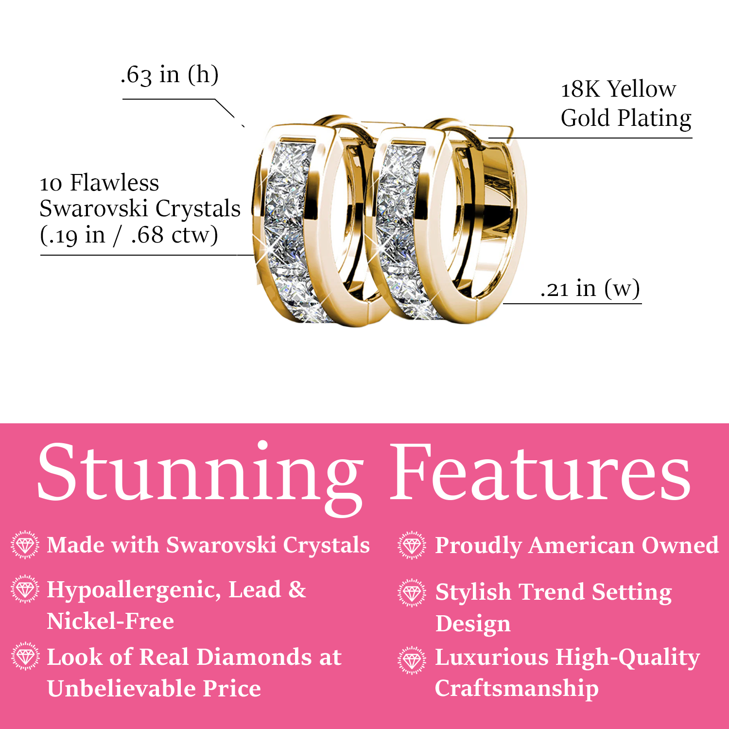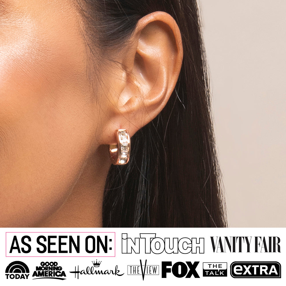 These Giselle Hoop Crystal Earrings by Cate & Chloe radiate effortless charm and timeless glamour. With 10 brilliant Swarovski® crystals nestled into a sleek 18k white gold-plated hoop, the Giselle earrings are designed to catch light and turn heads. The balanced proportions and secure latch back make them both refined and wearable—ideal for everyday sparkle or polished evening wear.