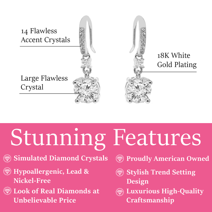 Valerie 18k White Gold Plated Drop Earrings with Simulated Diamond Crystals