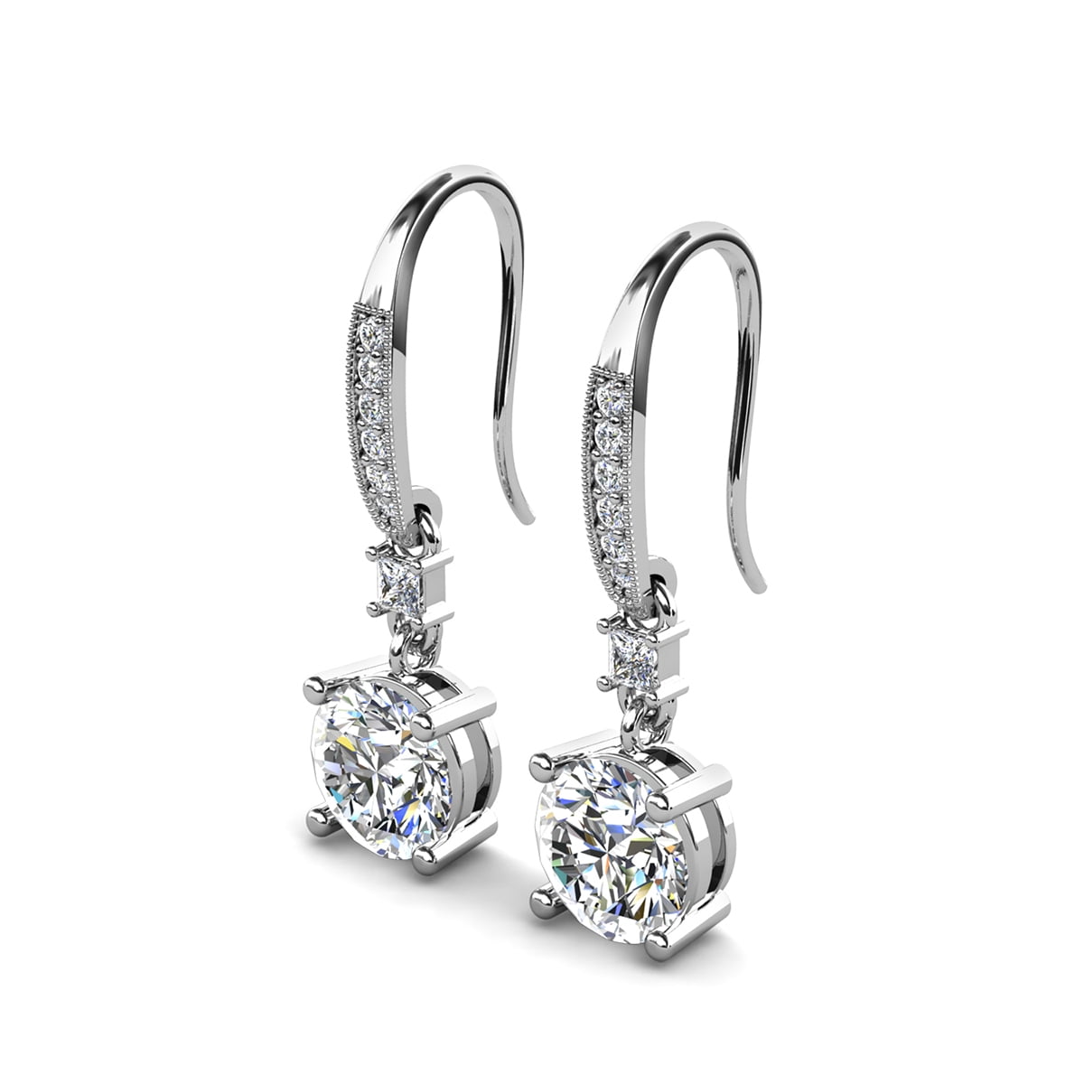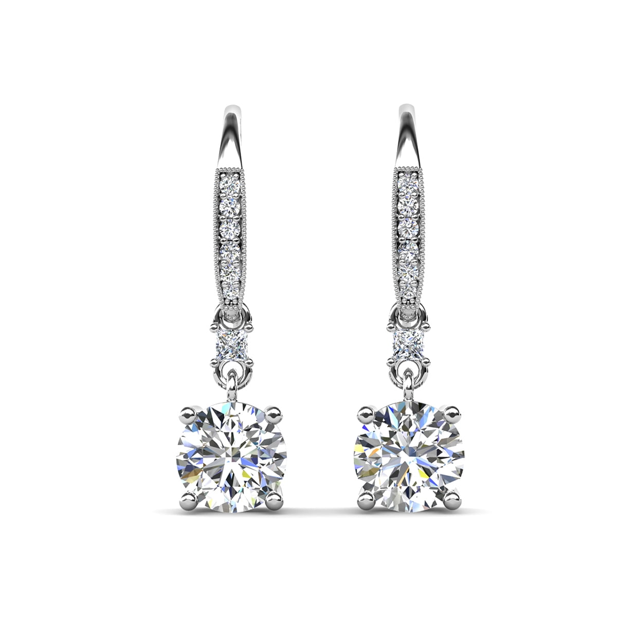 Crafted in 18k white gold plating over brass with 2 round-cut simulated diamond cubic zirconia (7mm) and 14 channel-set accent stones (1mm). Backing: Fish hook. Hypoallergenic, lead & nickel free.
